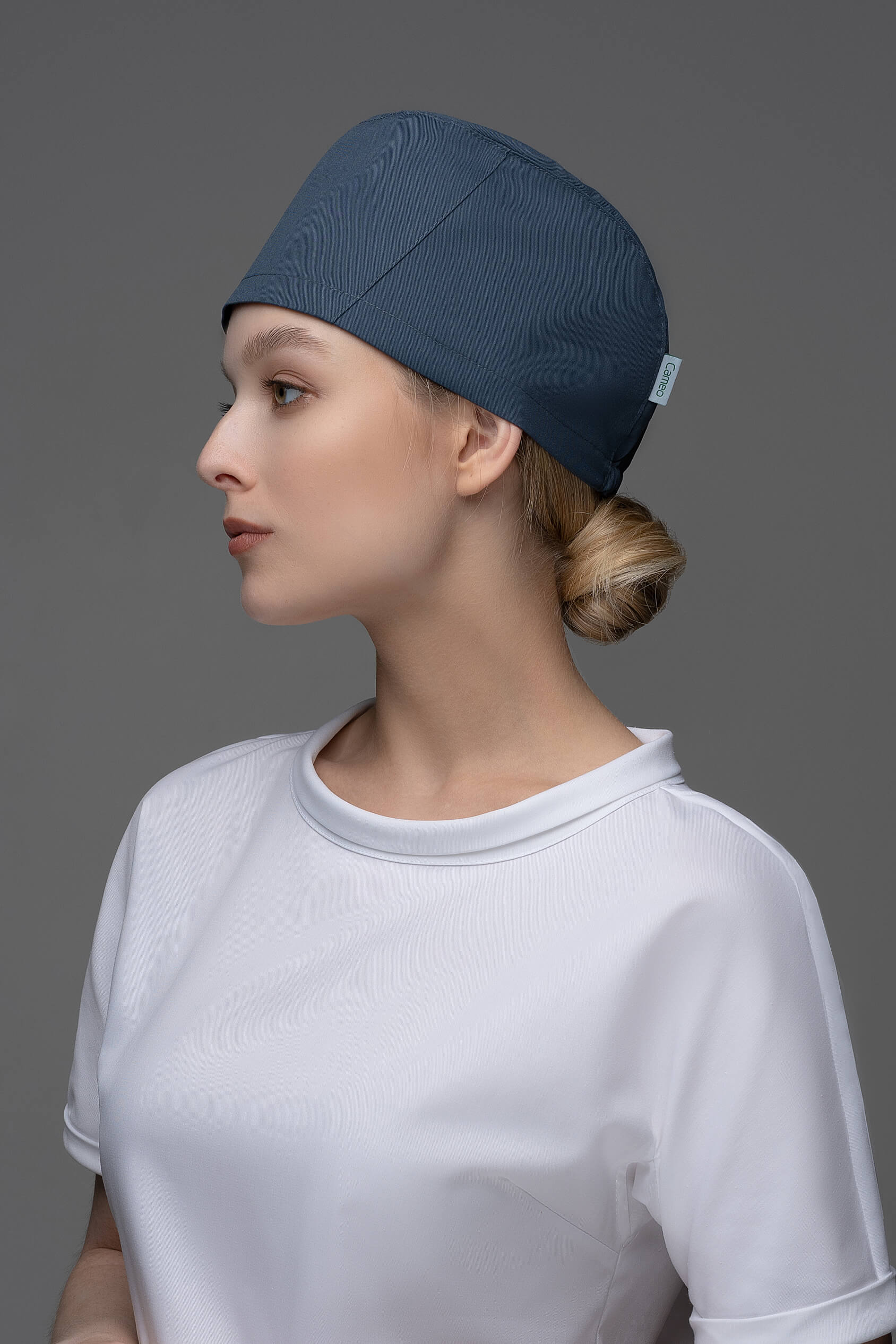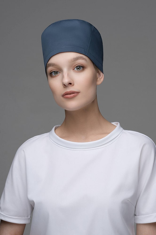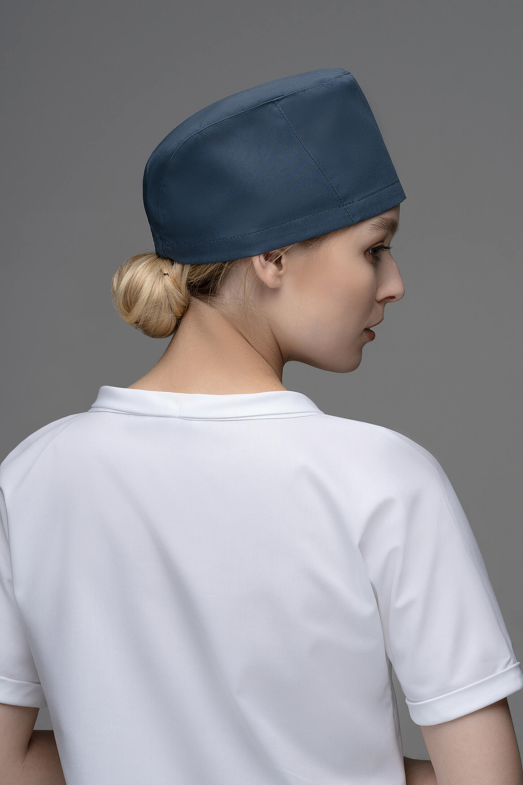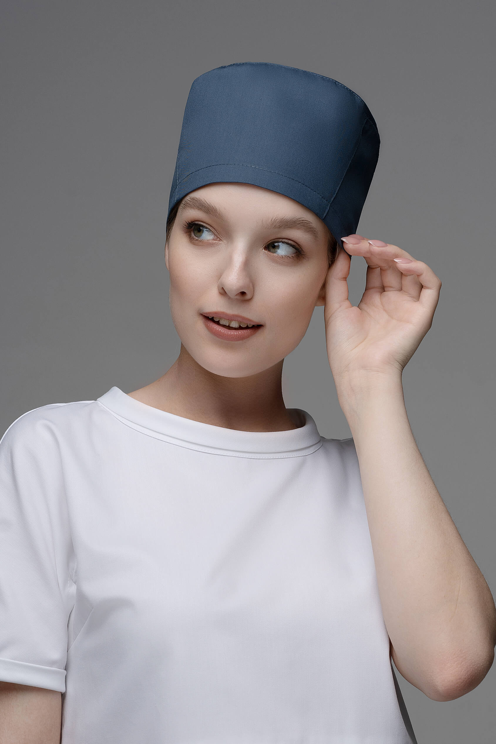 Медицинская шапочка отлично дополняет образ современного врача. Модель универсальная  - подходит как женщинам, так и мужчинам, имеет современный дизайн. Высота головного убора спереди - 11 см. Резинка в задней части обеспечивает комфорт при ношении. Ткань обеспечивает удобство в носке, возможность частых стирок; отсутствие усадки и сохранение цвета.