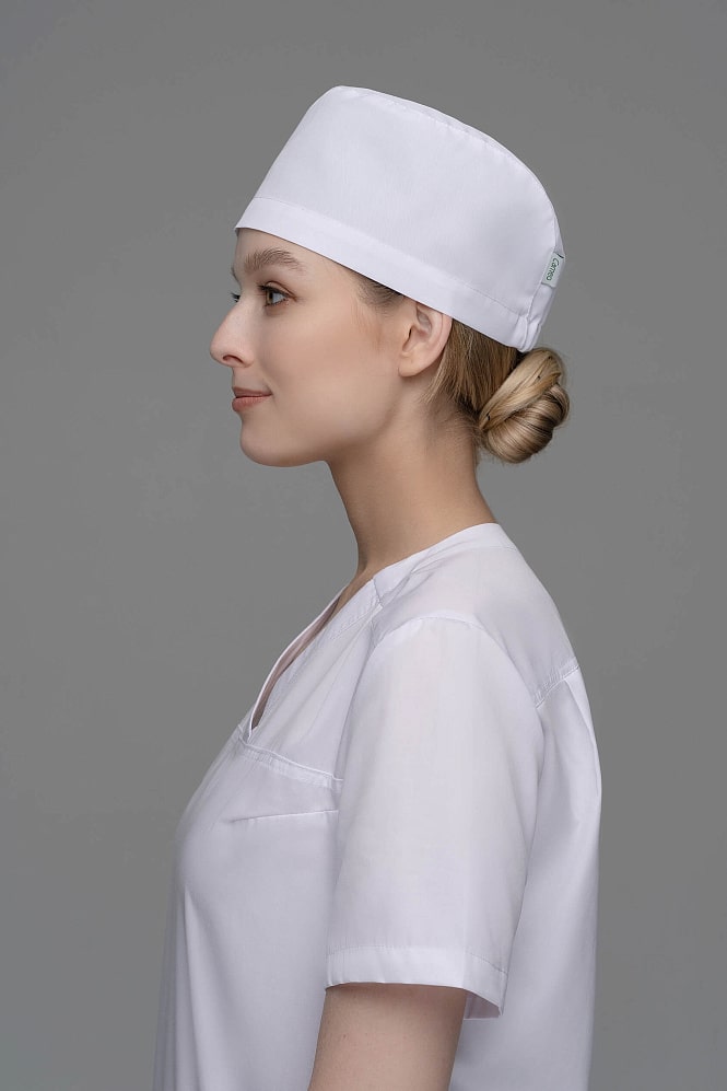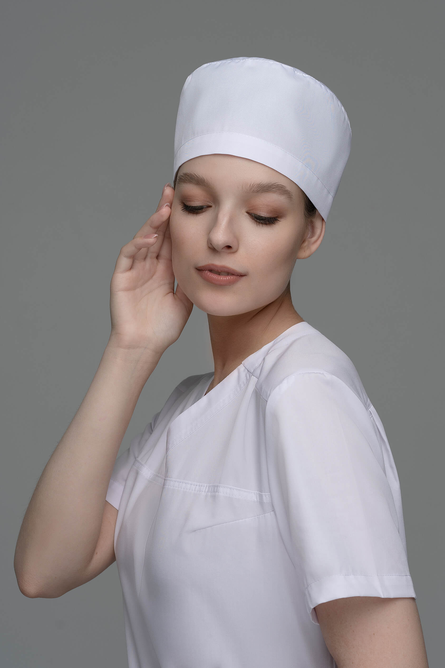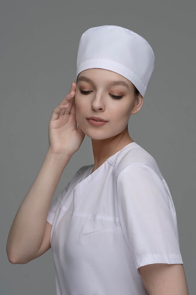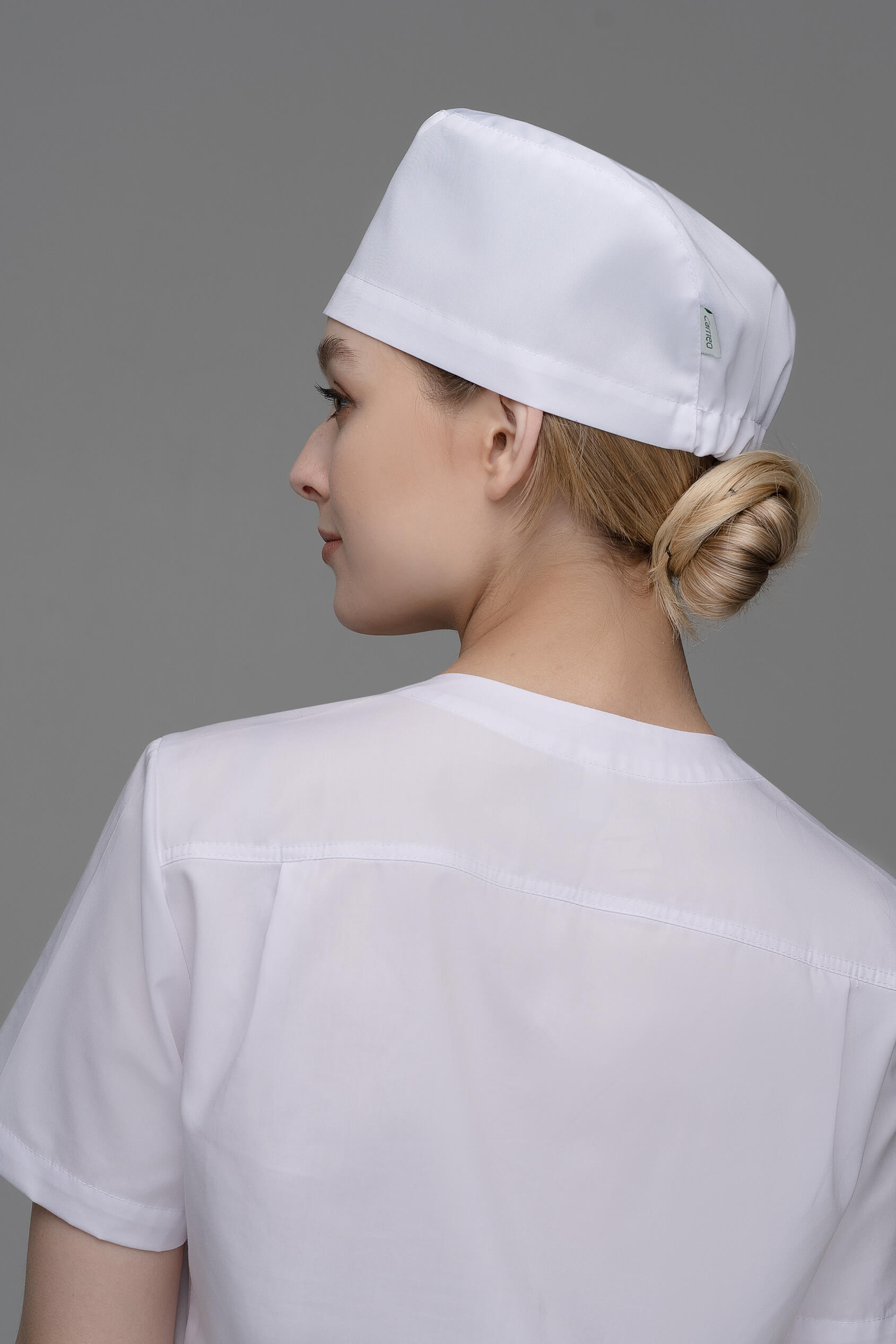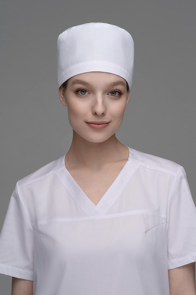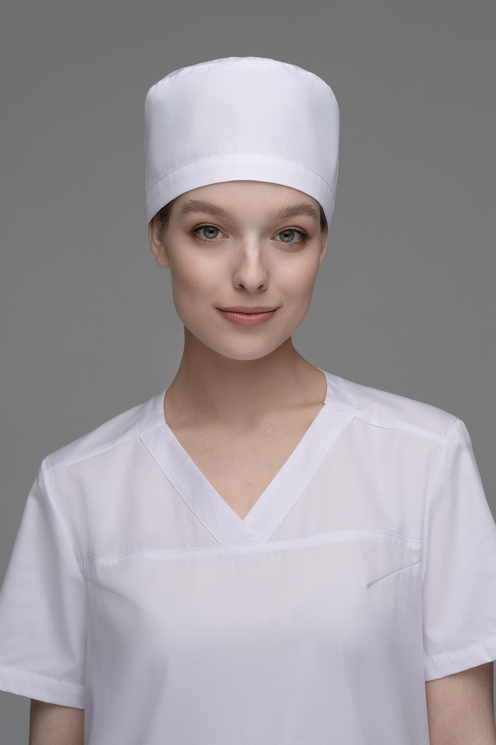 Обязательный атрибут в образе врача -  стильная медицинская шапочка. Модель универсальная - подходит как женщинам, так и мужчинам. Высота спереди - 11 см. В подгиб задней стенки вставлена резинка для удобства. Ткань мало мнется, сохраняет вид и цвет, при сушке в расправленном виде не требует дополнительной обработки утюгом.