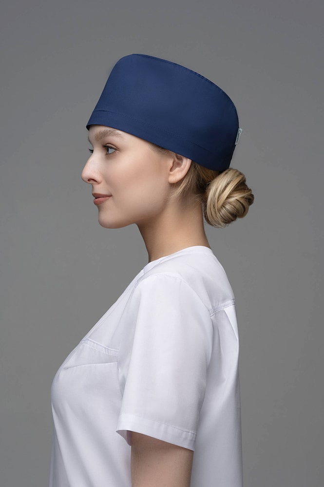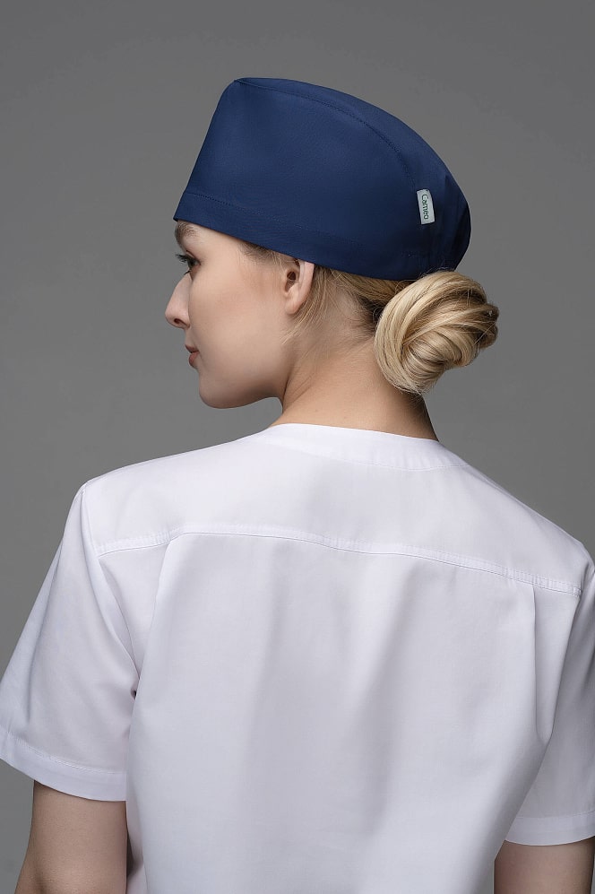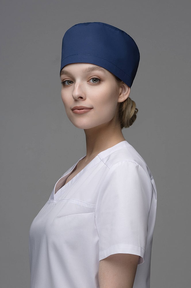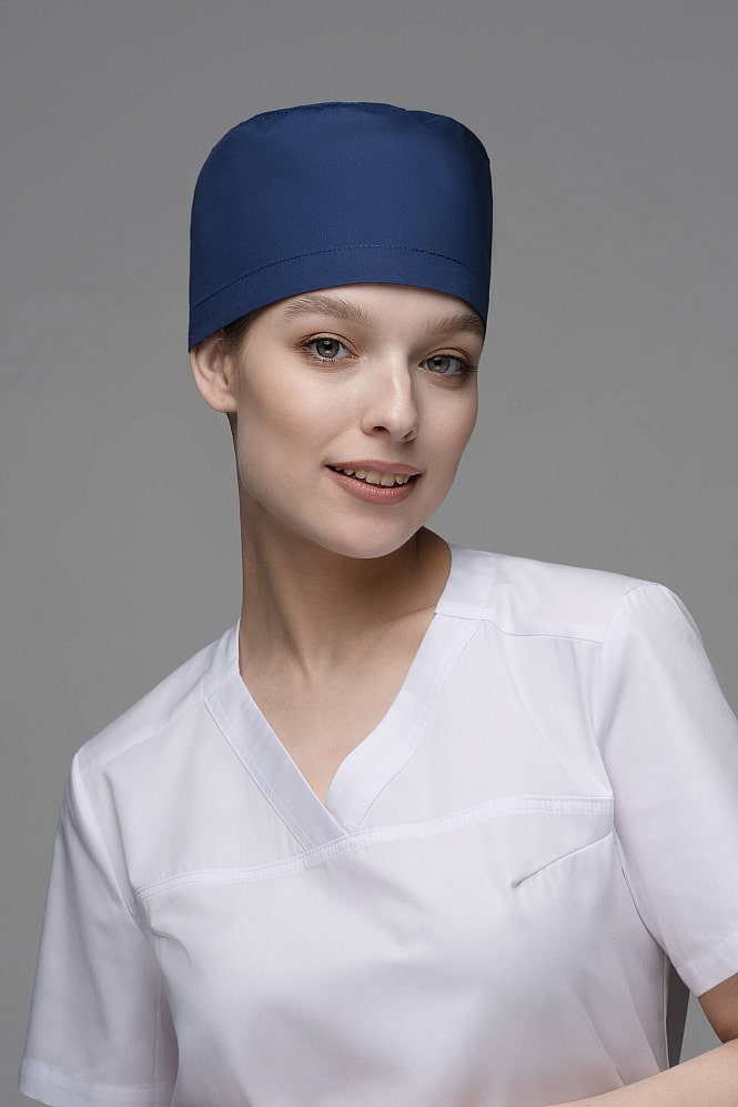 Обязательный атрибут в образе врача -  стильная медицинская шапочка. Модель универсальная - подходит как женщинам, так и мужчинам. Высота спереди - 11 см. В подгиб задней стенки вставлена резинка для удобства. Ткань мало мнется, сохраняет вид и цвет, при сушке в расправленном виде не требует дополнительной обработки утюгом.