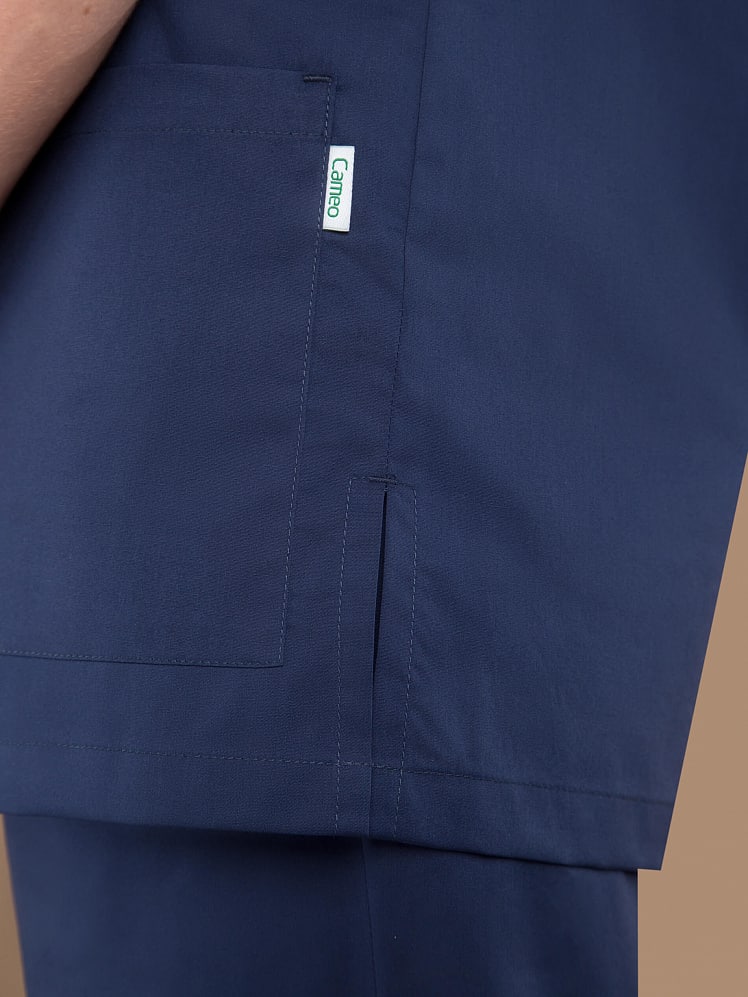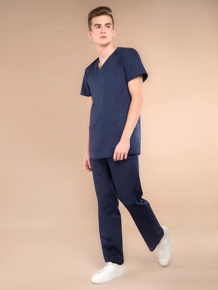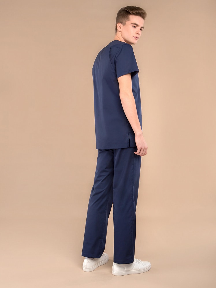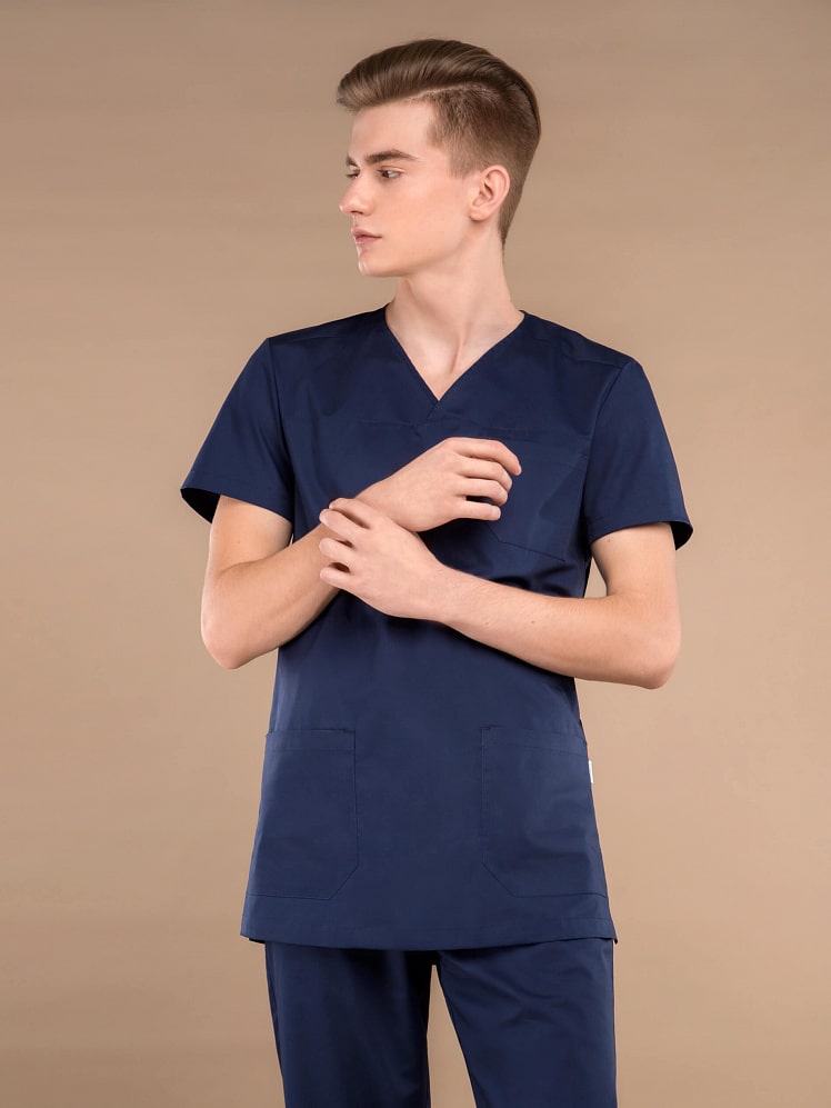 Мужчины, выбравшие эту модель, предпочитают в одежде простоту, ненавязчивость и полную свободу движения. Прямые линии, отсутствие застежки и воротника, накладные карманы – все это формирует универсальный образ. Удобства добавляют боковые разрезы и складки «гольф» на блузе.