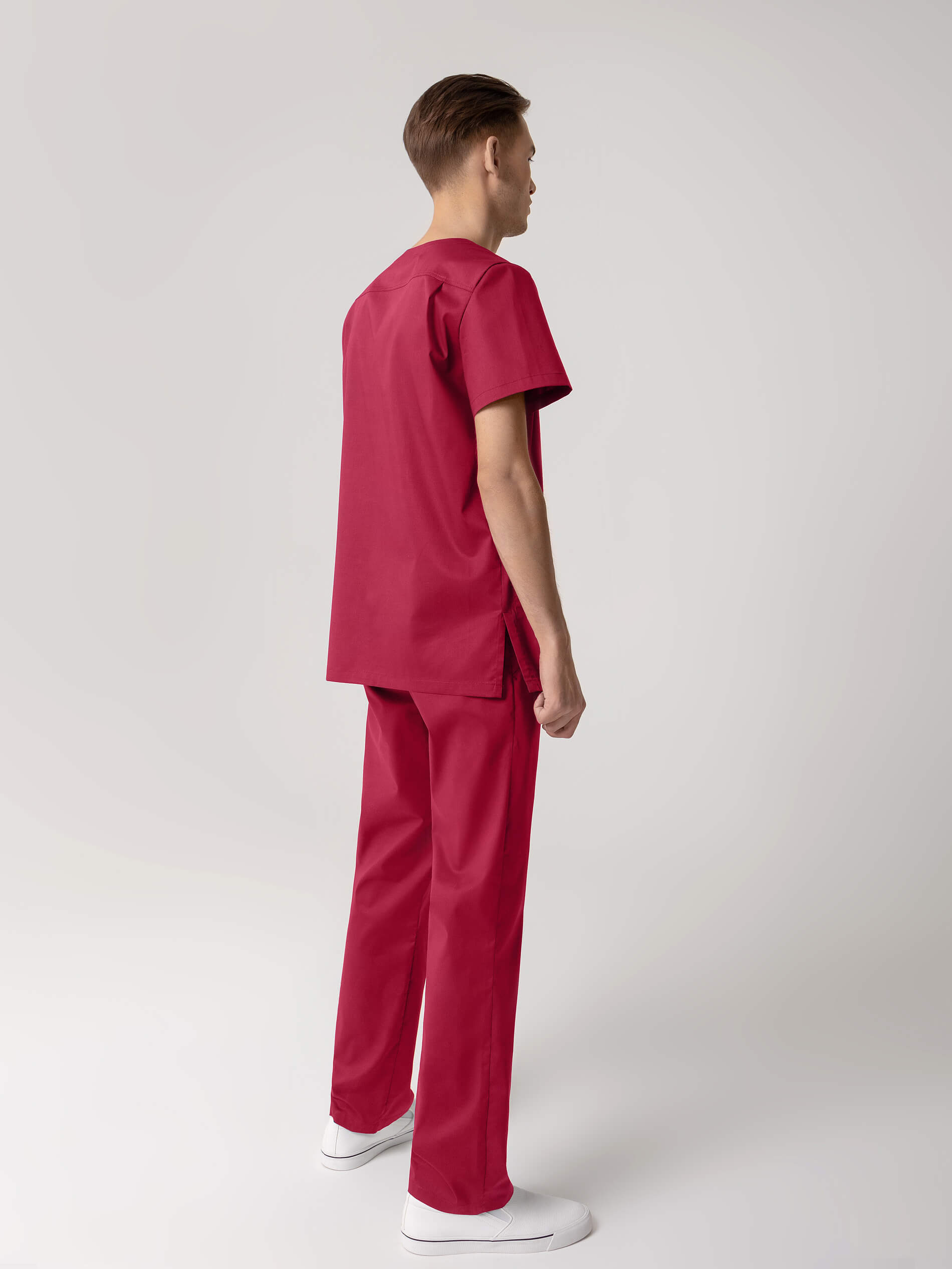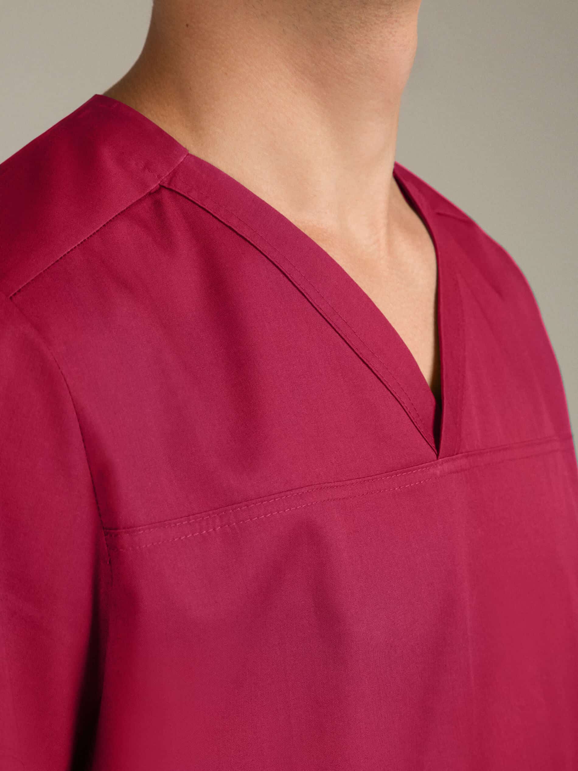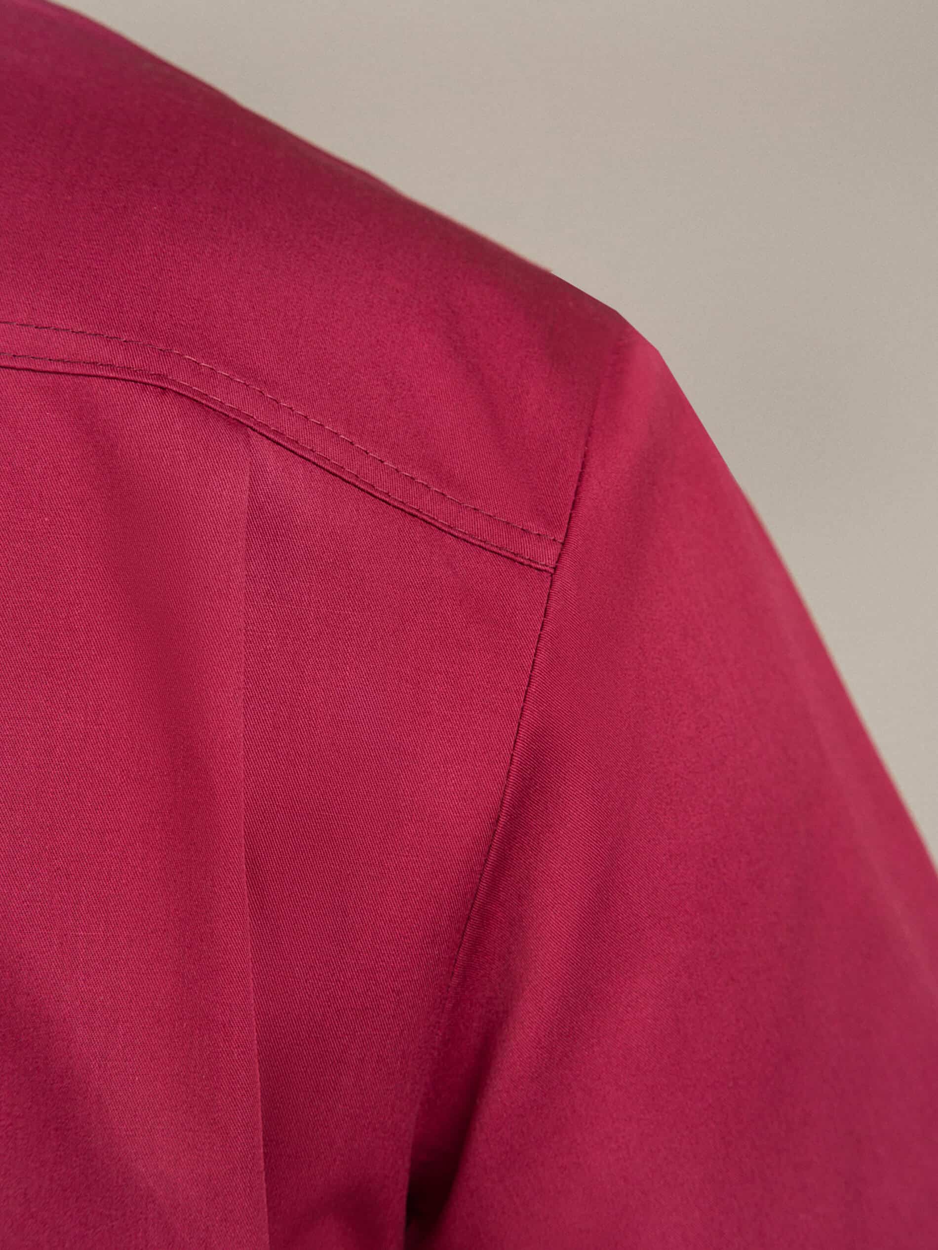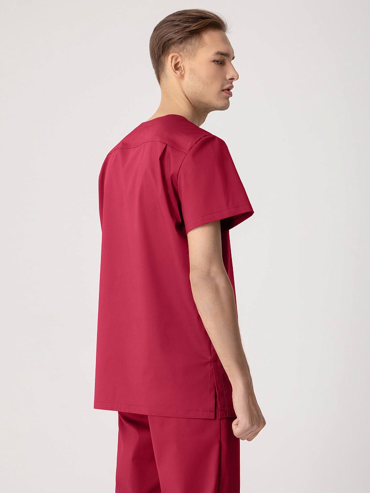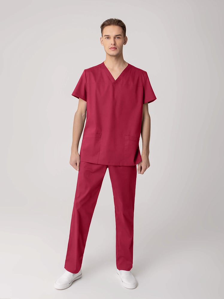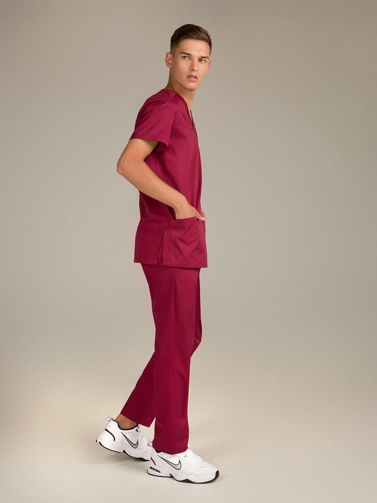 Этот костюм - воплощение минимализма и строгих прямых линий. Прямой силуэт, отсутствие застежки и воротника - он надевается буквально «одним движением». Практичный и удобный пояс на брюках в виде кулиски помогает регулировать размер. В кулиску вставлена лента с нанесенным товарным знаком «Cameo». Два накладных кармана на блузе добавляют костюму функциональности.