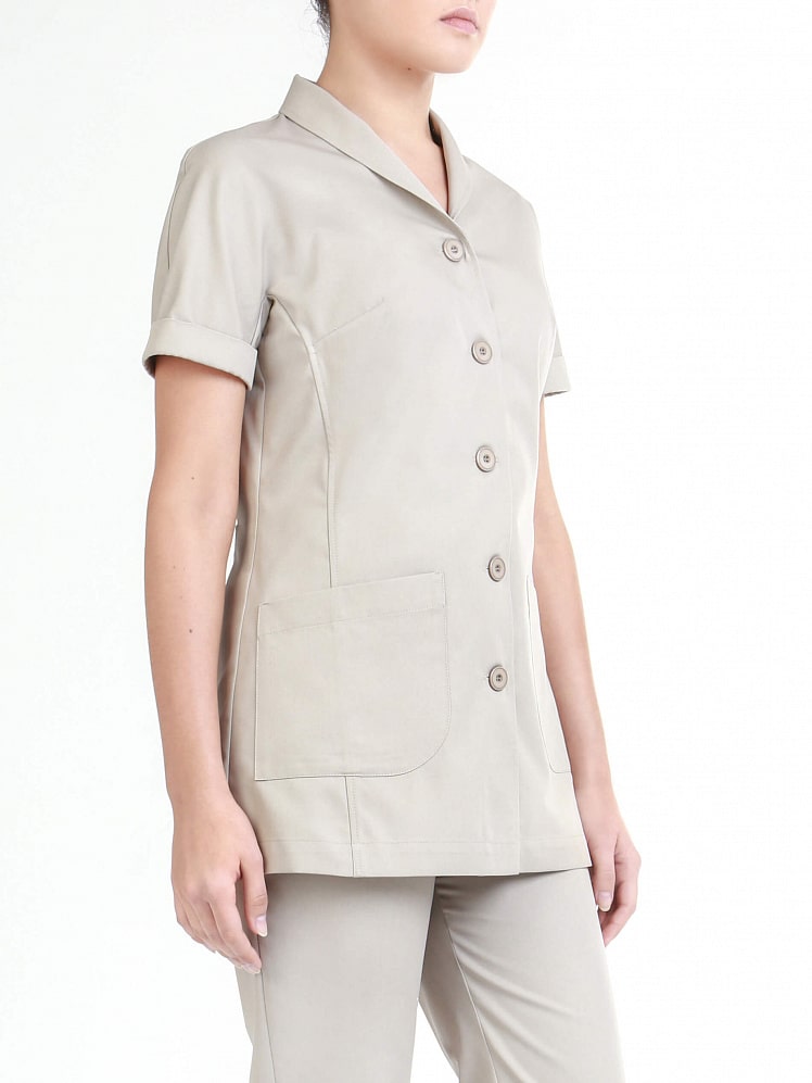 Женская блуза совмещает в себе одновременно изящество женственных линий и конструктивность. Сочетание крупных функциональных накладных карманов и маленького шалевого воротника придает образу динамичности и неординарности. Цельнокроеные рукава не стесняют даже самые энергичные движения. Эта модель создана, чтобы служить Вашему комфорту!