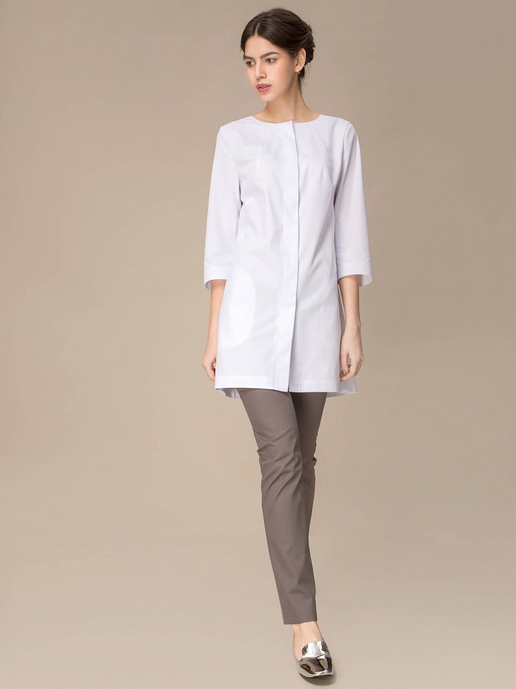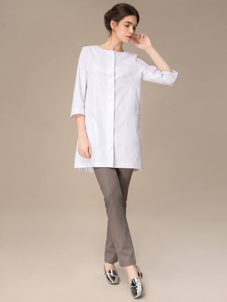 Лаконичный трапециевидный силуэт туники  не нуждается в помпезном дополнительном декоре. Плавные конструктивные линии самостоятельно  создают модный образ. Обладательница туники будет чувствовать себя женственной, легкой и утонченной, не зависимо от особенностей собственной фигуры.
