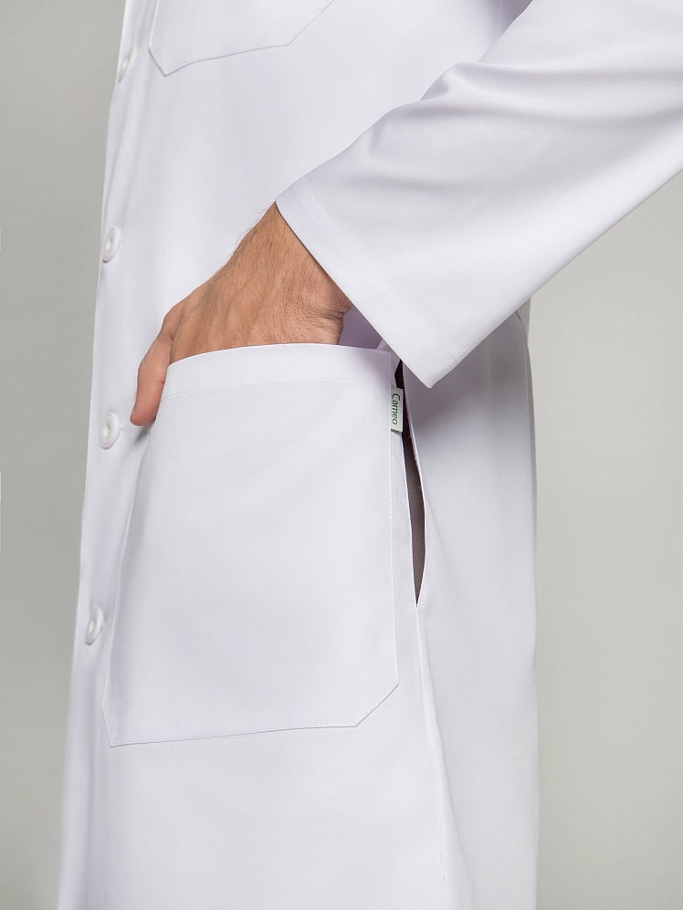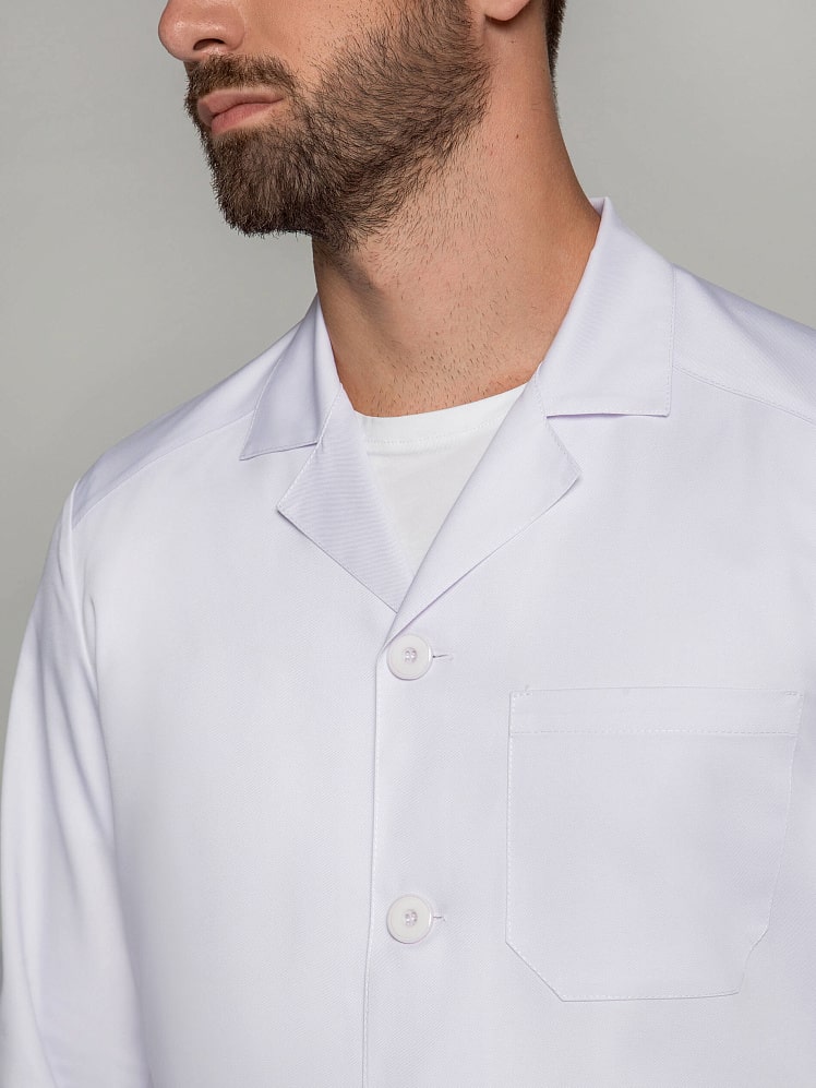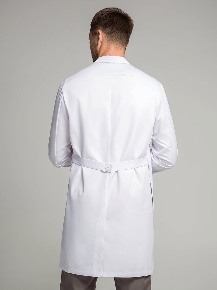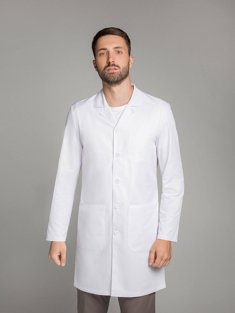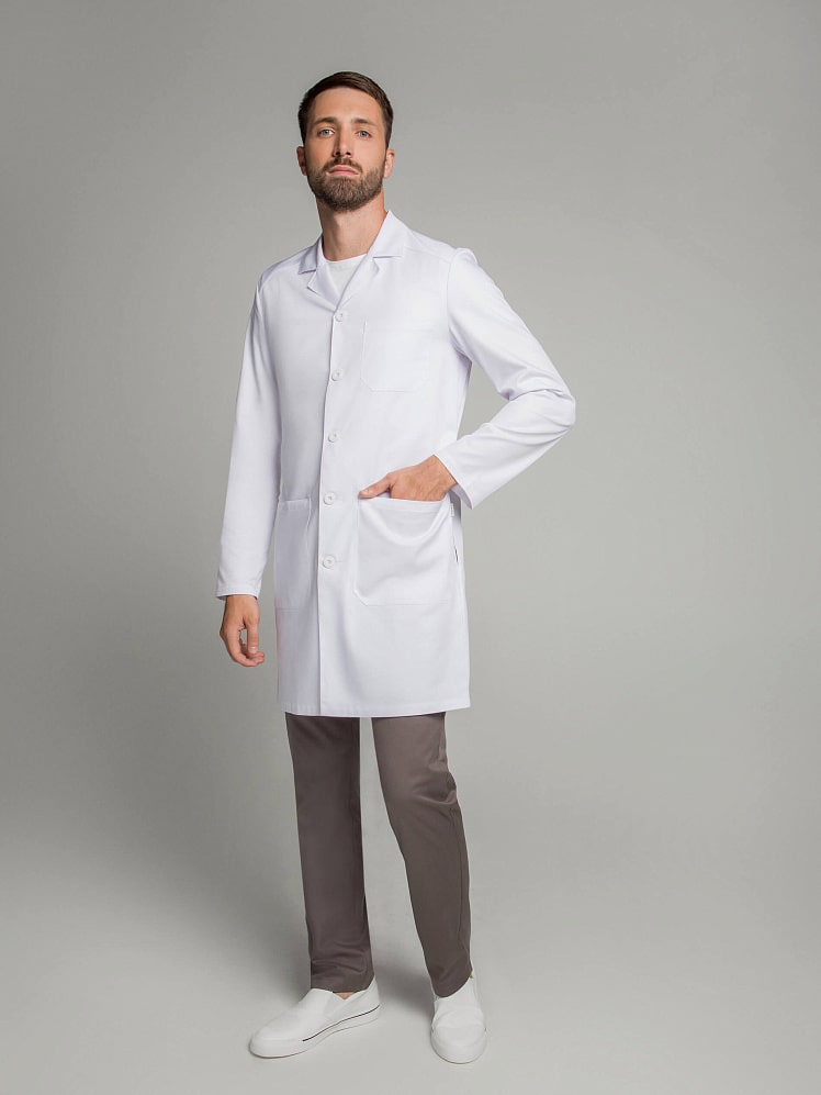 Классический медицинский халат с английским воротником всегда актуален и проверен временем. Идеальные строчки, правильный крой, комфортная посадка характеризуют модель. А щелевидные разрезы в боковых швах на уровне карманов придают неординарности.