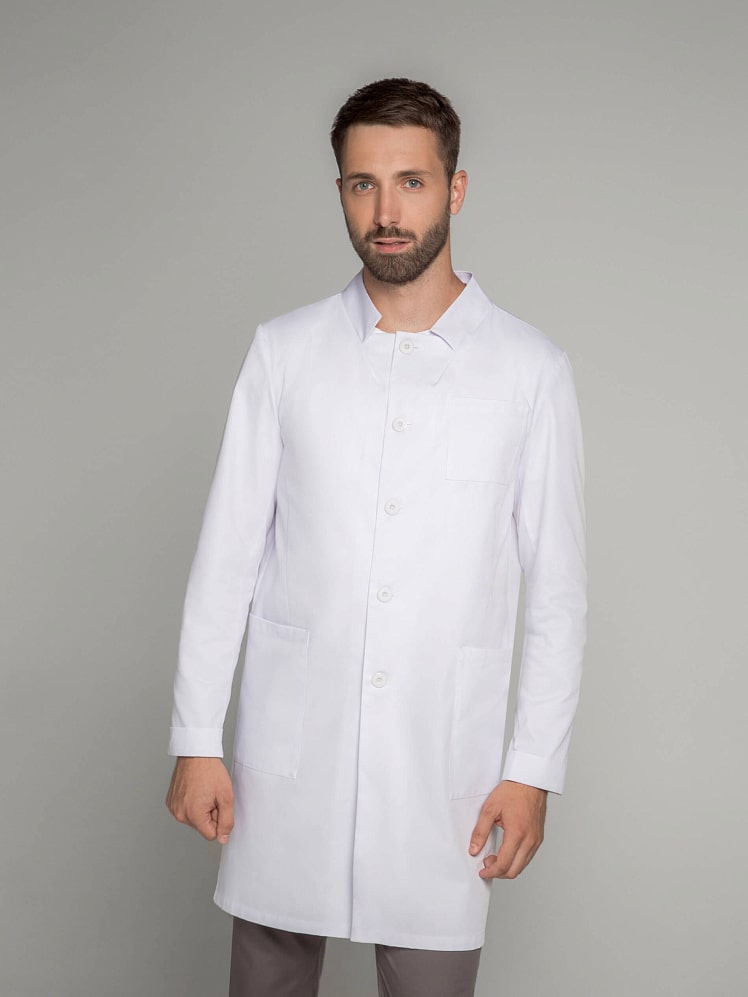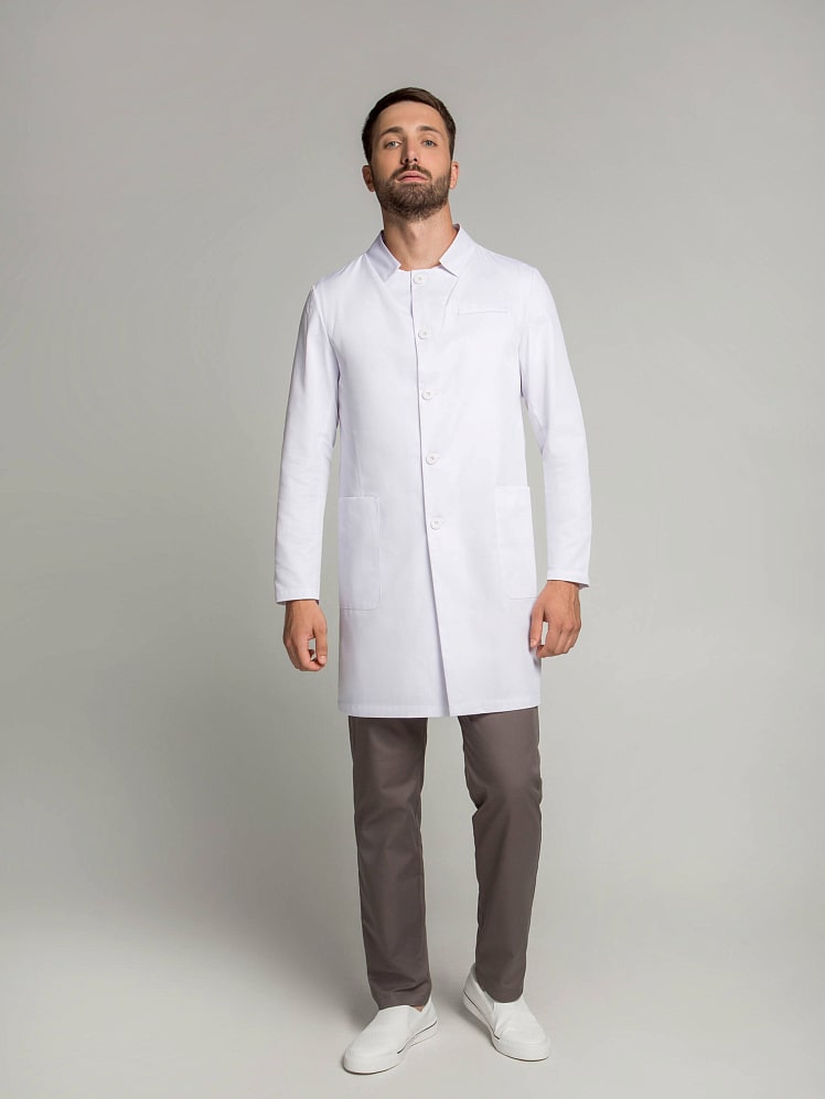 Эффектная модель медицинского халата позволяет выглядеть уверенно и респектабельно. Халат оформлен модными деталями: оригинальным воротником и листочкой, имитирующей нагрудный карман, которые позволят выглядеть всегда свежо и актуально