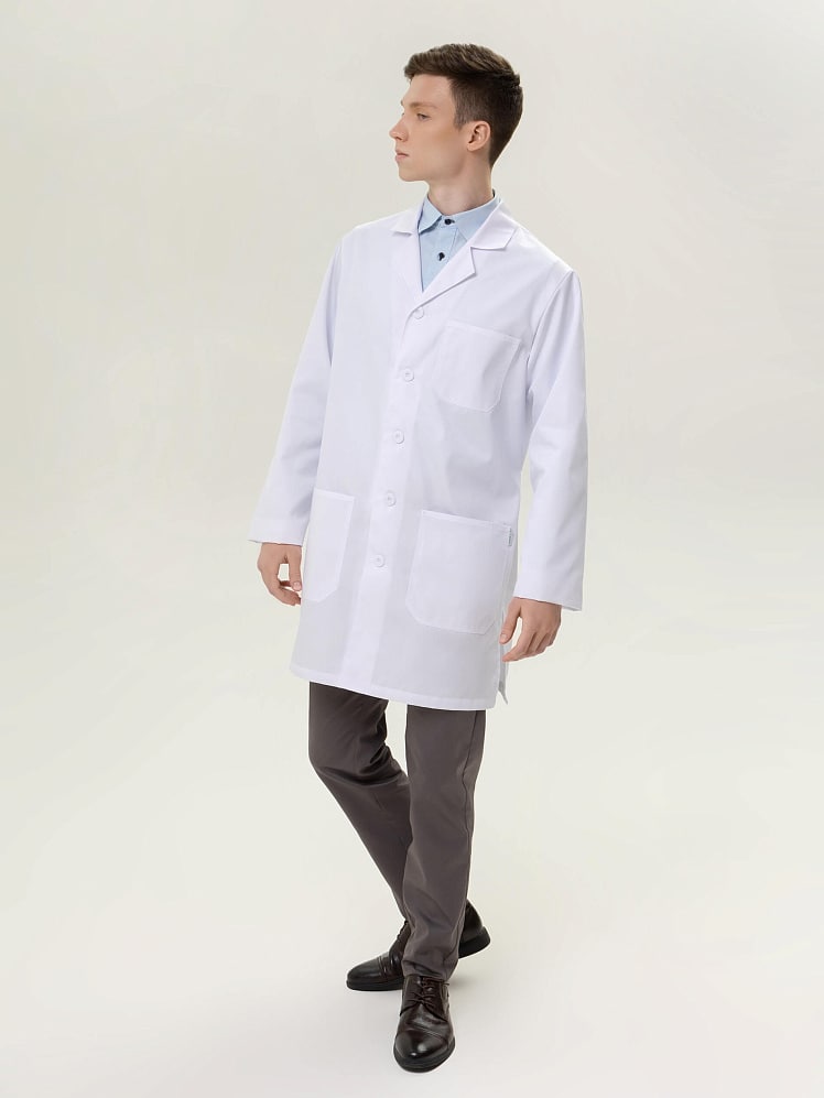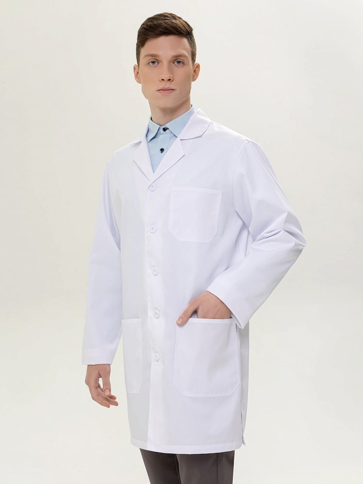 Классический и элегантный медицинский халат характеризуется минимализмом и умеренностью. Форма халата свободная, повторяет естественную линию плеч и гарантирует идеальную посадку на любой фигуре. При движении униформа не деформируется и сохраняет стиль. V-образный вырез и небольшой воротник «английского» типа придают строгости модели. Сочетая в себе черты двух элементов гардероба врача, медицинского халата, жакета или пиджака, модель идеально подходит для создания многослойного образа, можно надевать на медицинский костюм или комбинировать с брюками. Белый халат медицинский с длинным рукавом оснащен вместительными карманами. Медицинская форма прочная и износоустойчивая, держит форму. Медхалат мужской на пуговицах сочетается с другими моделями бренда.