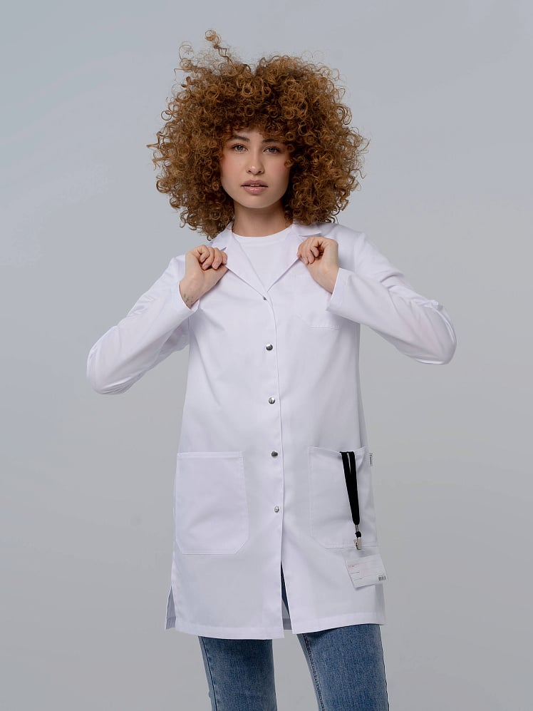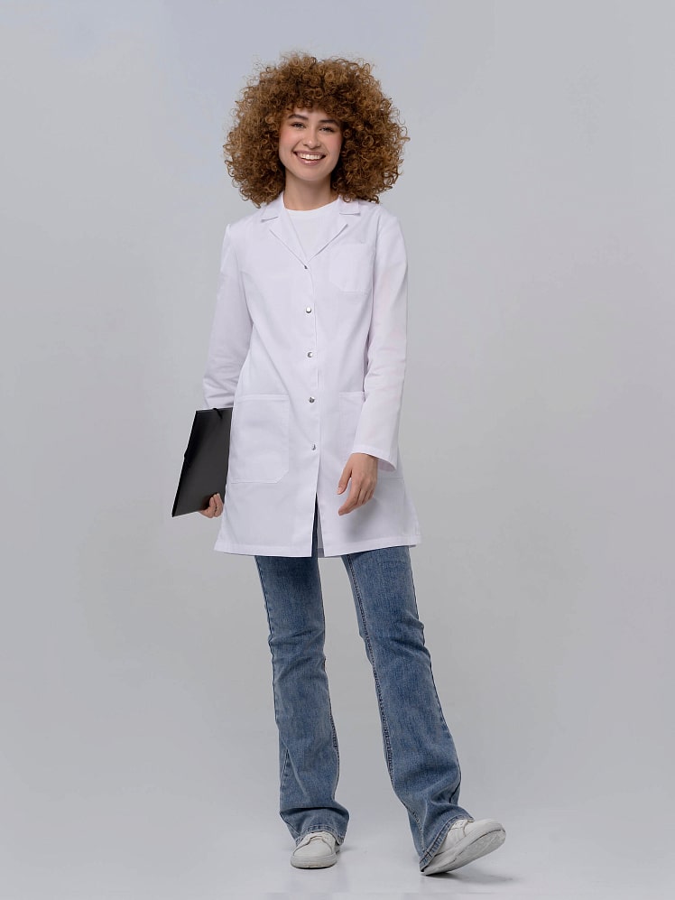 Классический медицинский халат характеризуется минимализмом и элегантной умеренностью. Он прекрасно отметит индивидуальность и неповторимость своей обладательницы. V-образный вырез и небольшой воротник «английского» типа элегантно подчеркнут линию шеи, два полупояса акцентируют внимание на талии. Сочетая в себе черты двух элементов гардероба врача, медицинского халата, жакета или пиджака, модель идеально подходит для создания многослойного образа, можно надевать на медицинский костюм или комбинировать с брюками. Белый халат медицинский с длинным рукавом оснащен вместительными карманами. Медицинская униформа прочная и износоустойчивая, держит форму. Медхалат женский на кнопках сочетается с другими моделями бренда.