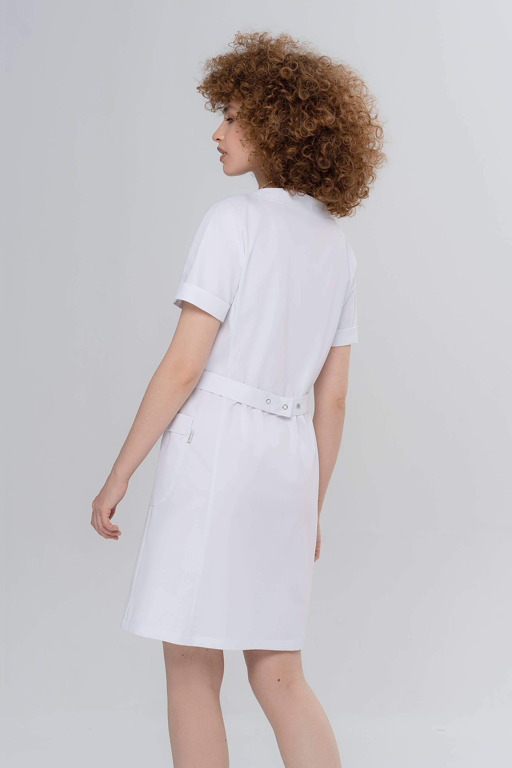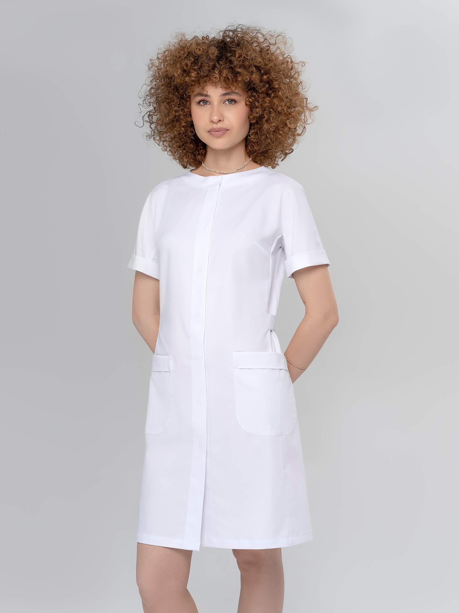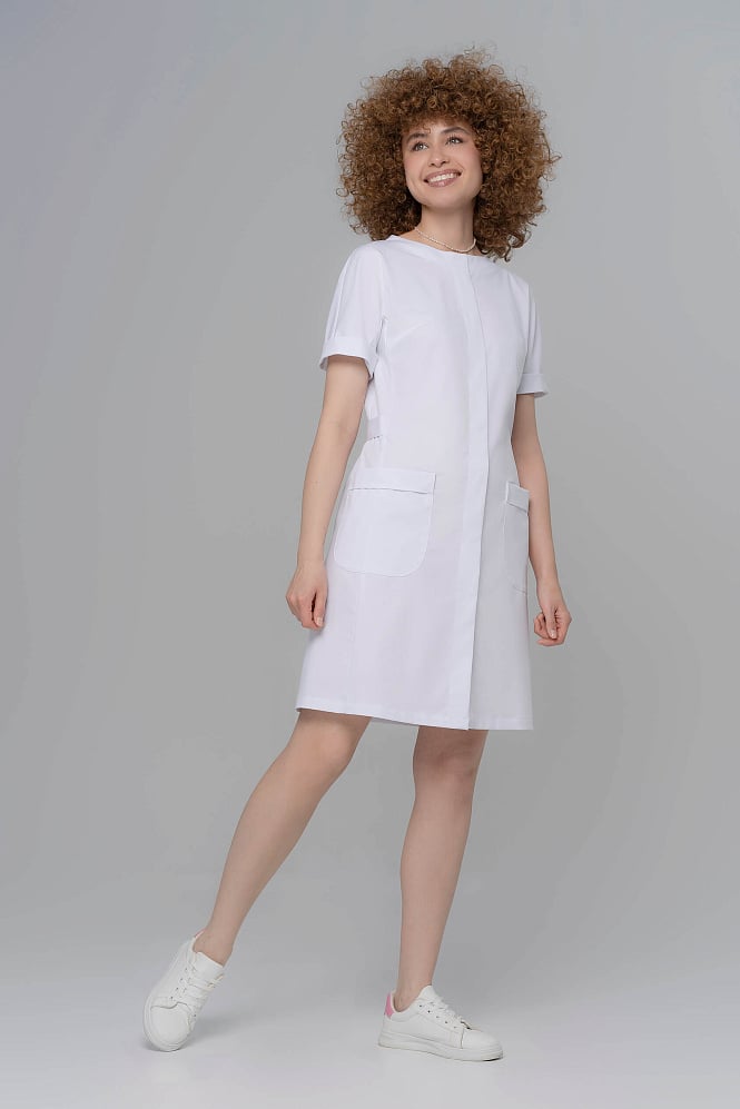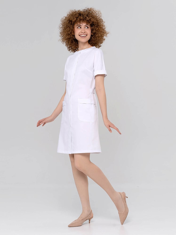 Халат с воротником-стойкой и короткими рукавами