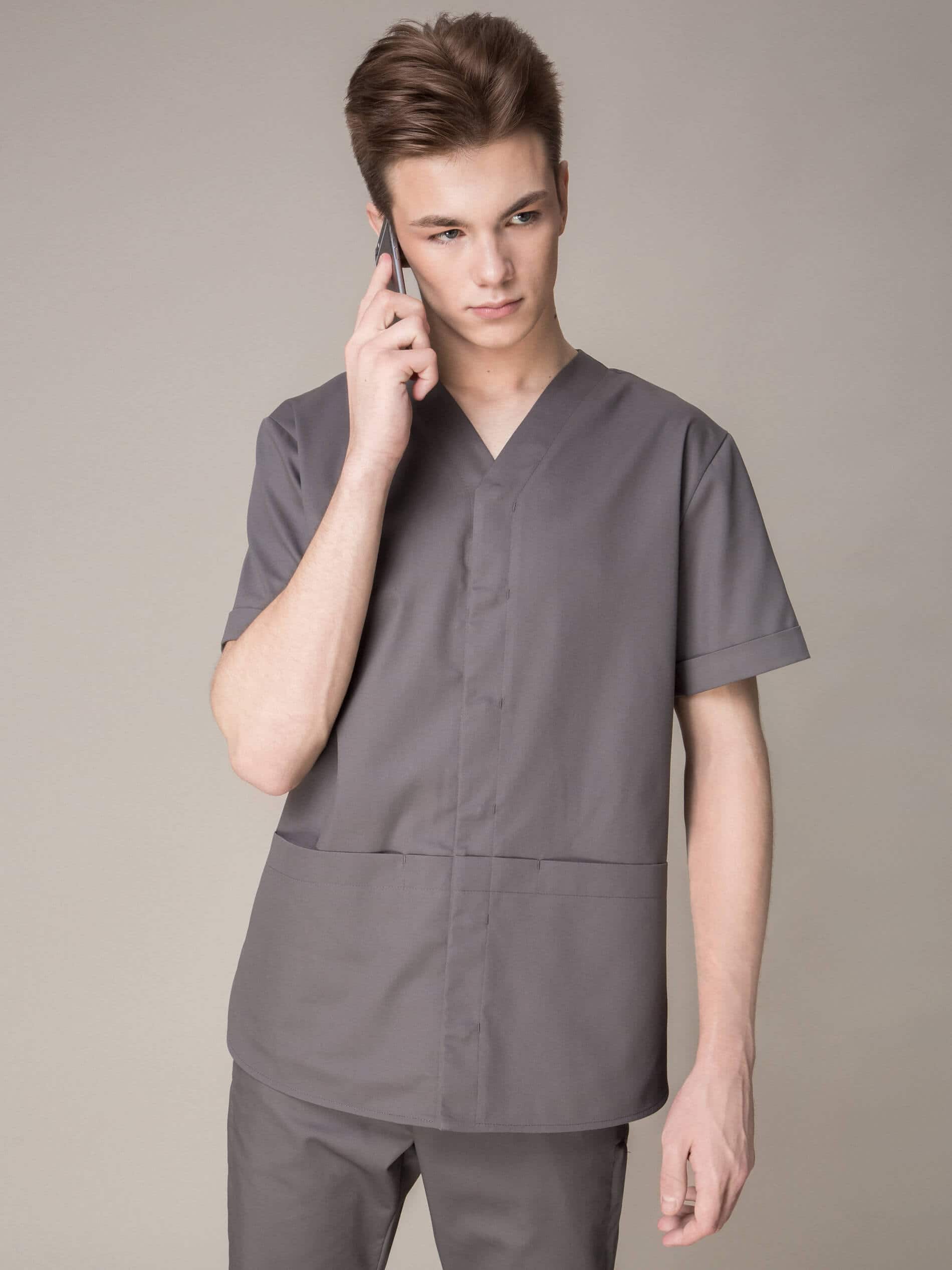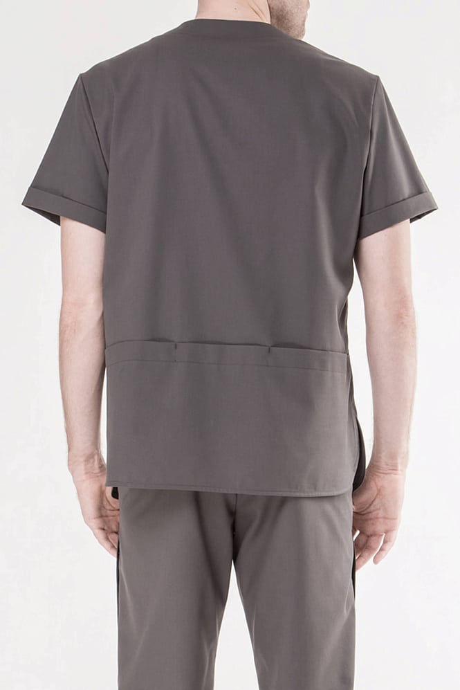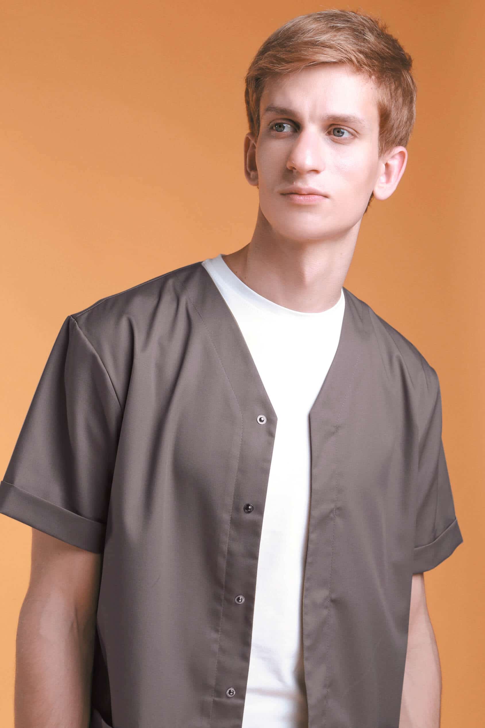 Лаконичный образ рубашки привлекает к себе внимание четкостью линий, необычностью карманов, спрятанных в складке. В то же время, V- образный вырез и скругленные боковые разрезы смягчают облик, делая его легким и открытым.