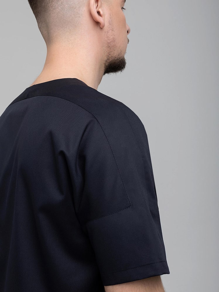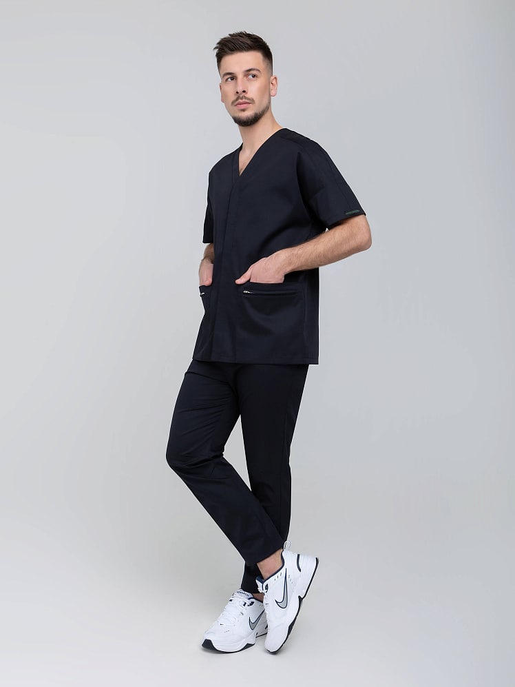 Непринужденная свобода этой неформальной медицинской рубашки привлекает внимание. Прямой силуэт, v-образный вырез горловины и потайная застежка на кнопки обеспечивают легкость и свободу движения. Неповторимость стиля подчеркивают рукава "реглан-погон", переходящие в кокетку, и карманы с застежкой на молнию. Выбрав эту модель обретаете актуальный неповторимый образ.