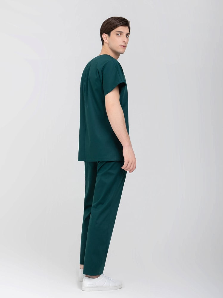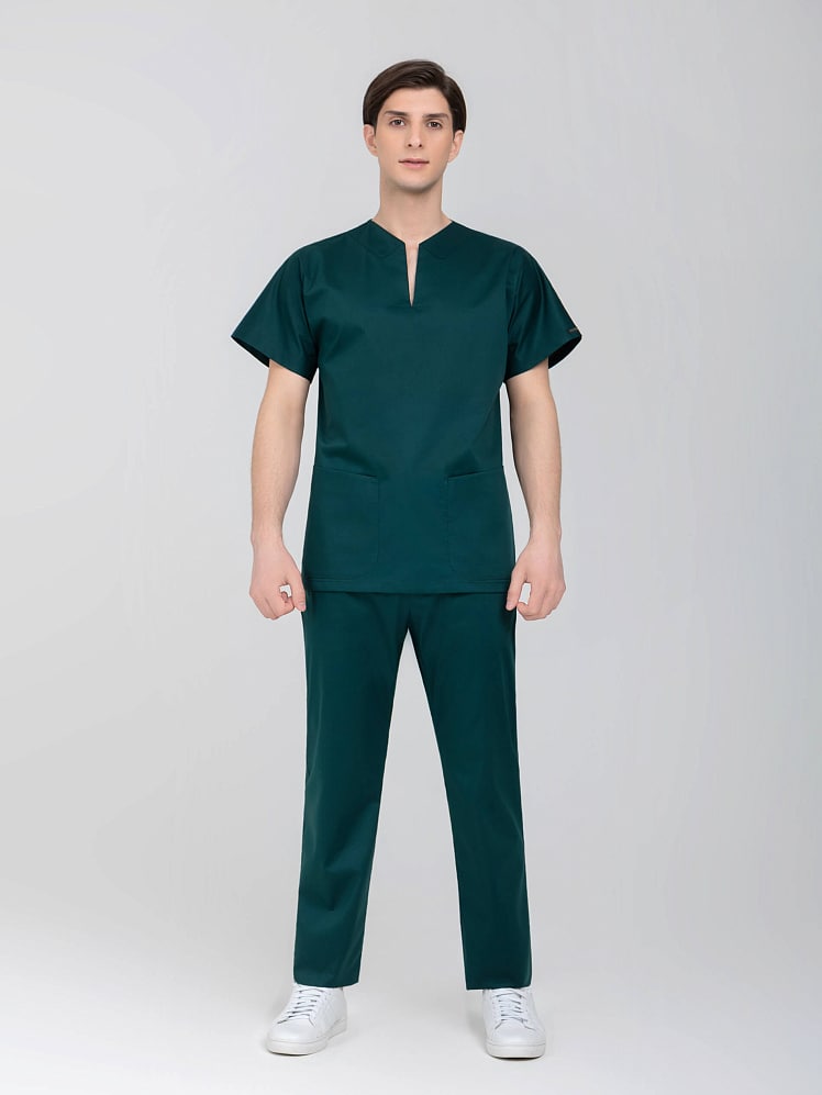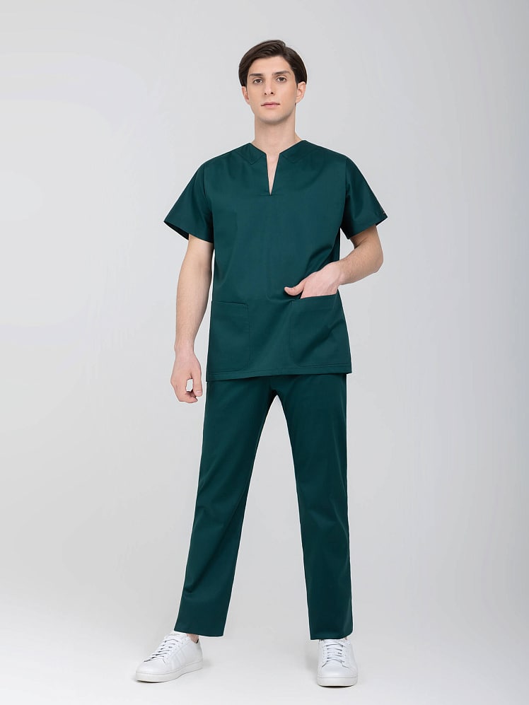 Этот элегантный медицинский костюм - прекрасный выбор современного врача, Формы модели просты и лаконичны, а горловина с притачными планками, имитирующими отложной воротник, акцентирует образ. Эластичная ткань с повышенным содержанием хлопка обеспечивает комфортный микроклимат во время работы и сохраняет презентабельный внешний вид.