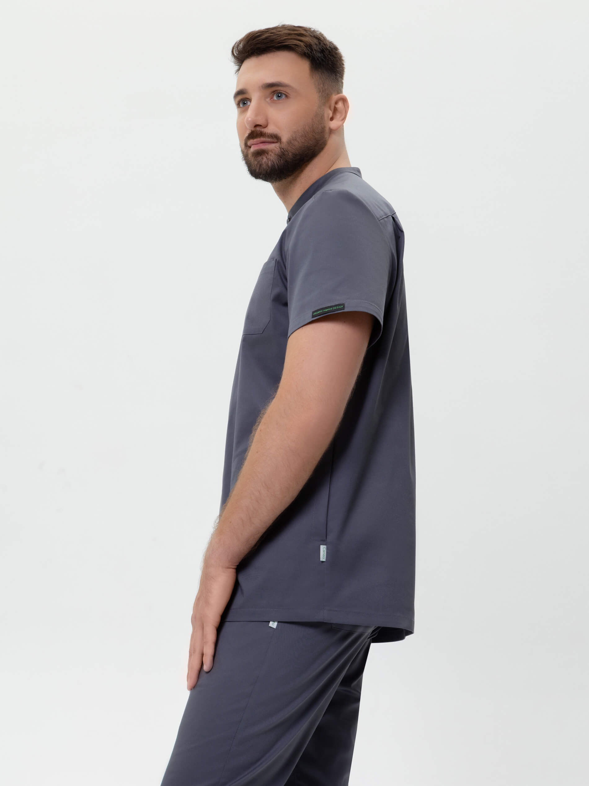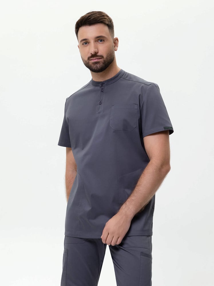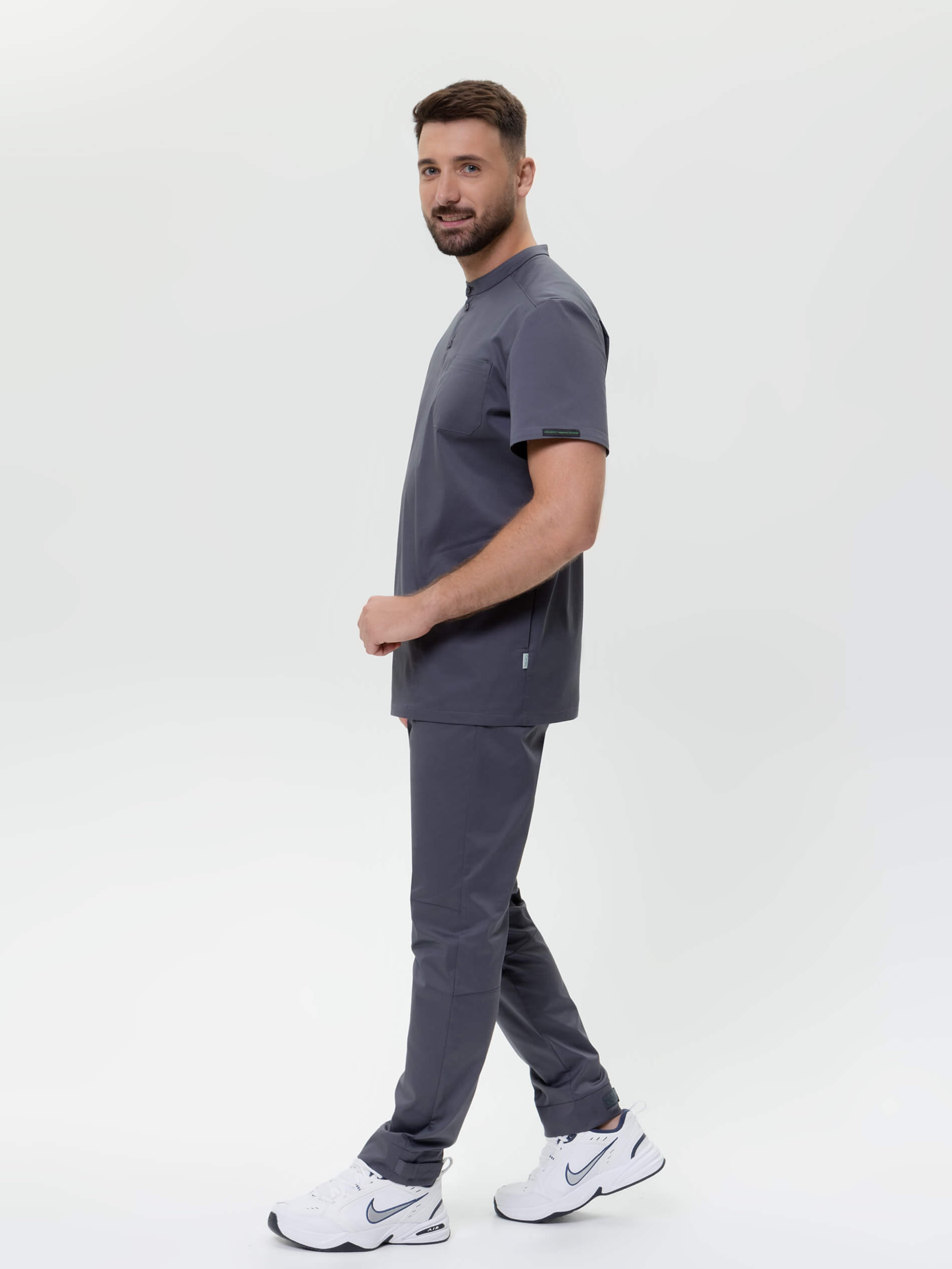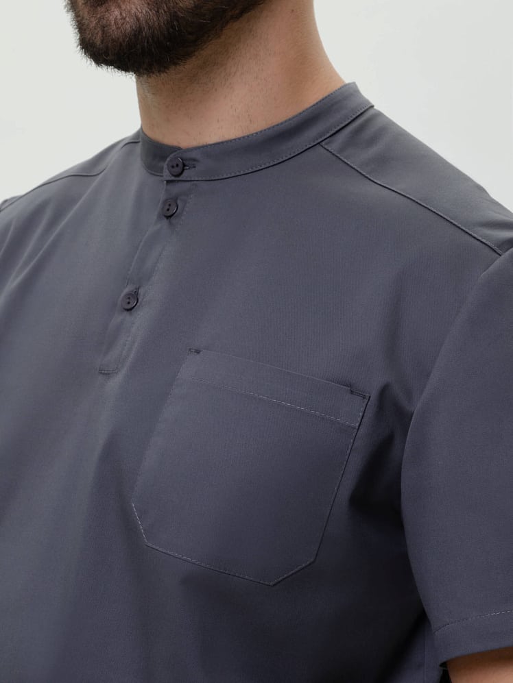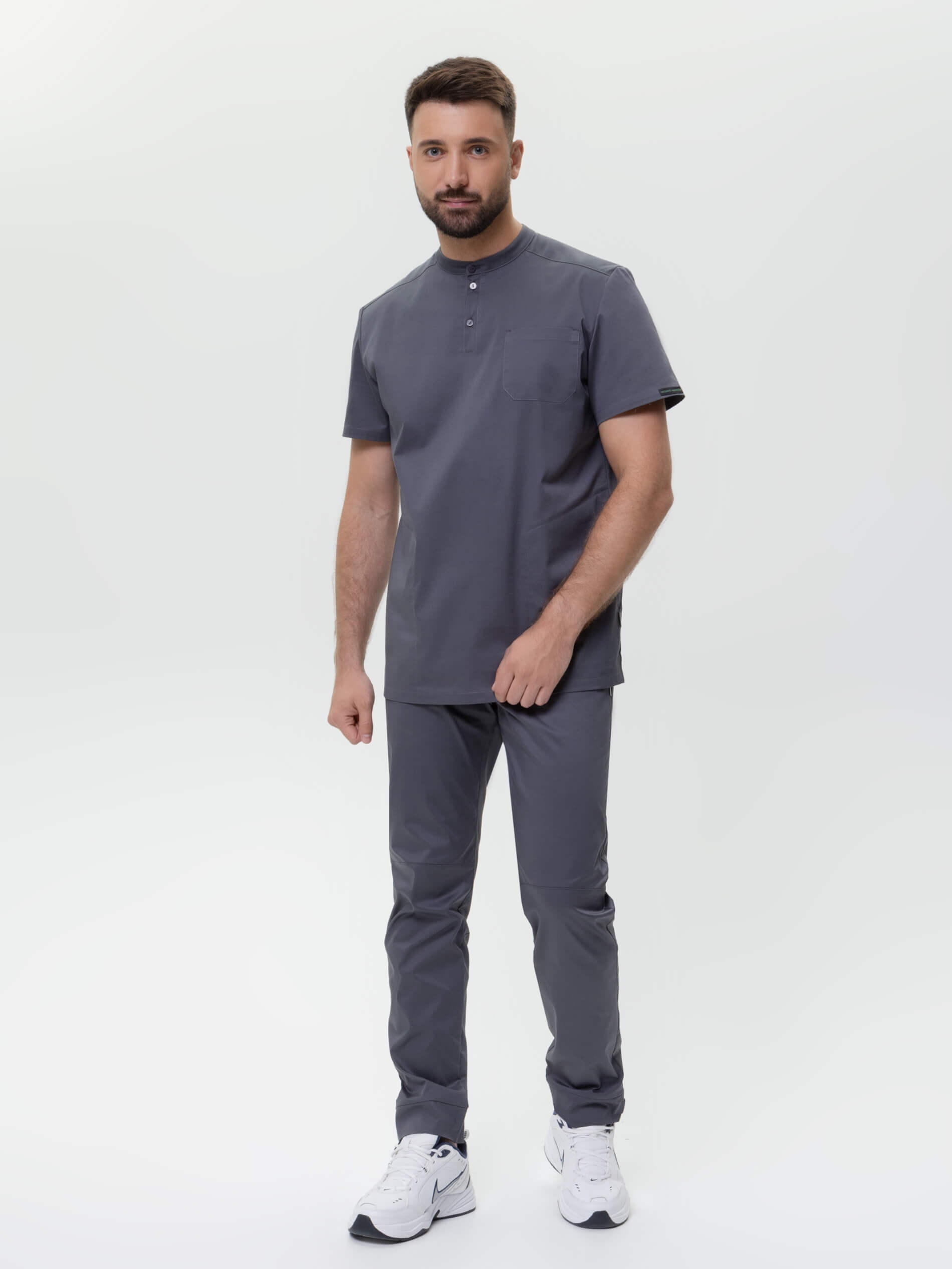 Стильный медицинский костюм для мужчин позволит создать неповторимый образ, который подчеркнет индивидуальность обладателя, продемонстрирует профессионализм и статус. Актуальная форма ворота с воротником "Стойка" и застежкой на 3 пуговицы дает возможность слегка менять образ от строгого до непринужденного. Хирургический костюм оснащен удобными карманами на рубашке и брюках. Прямые брюки с эластичной лентой в поясе обеспечивает комфорт, притачные манжеты сужают брюки у щиколоток, зрительно делая образ стройнее. Удачная конструкция модели, эластичность ткани, обеспечивающие легкость движения, позволят в полной мере реализовать свои профессиональные качества. Униформа стрейч идеальна для интенсивной работы, благодаря натуральному составу ткани, мягкая и эластичная, приятная на ощупь. Медицинский костюм останется насыщенным после многочисленных стирок, цвет устойчив к свету, химчисткам, механическому воздействию.