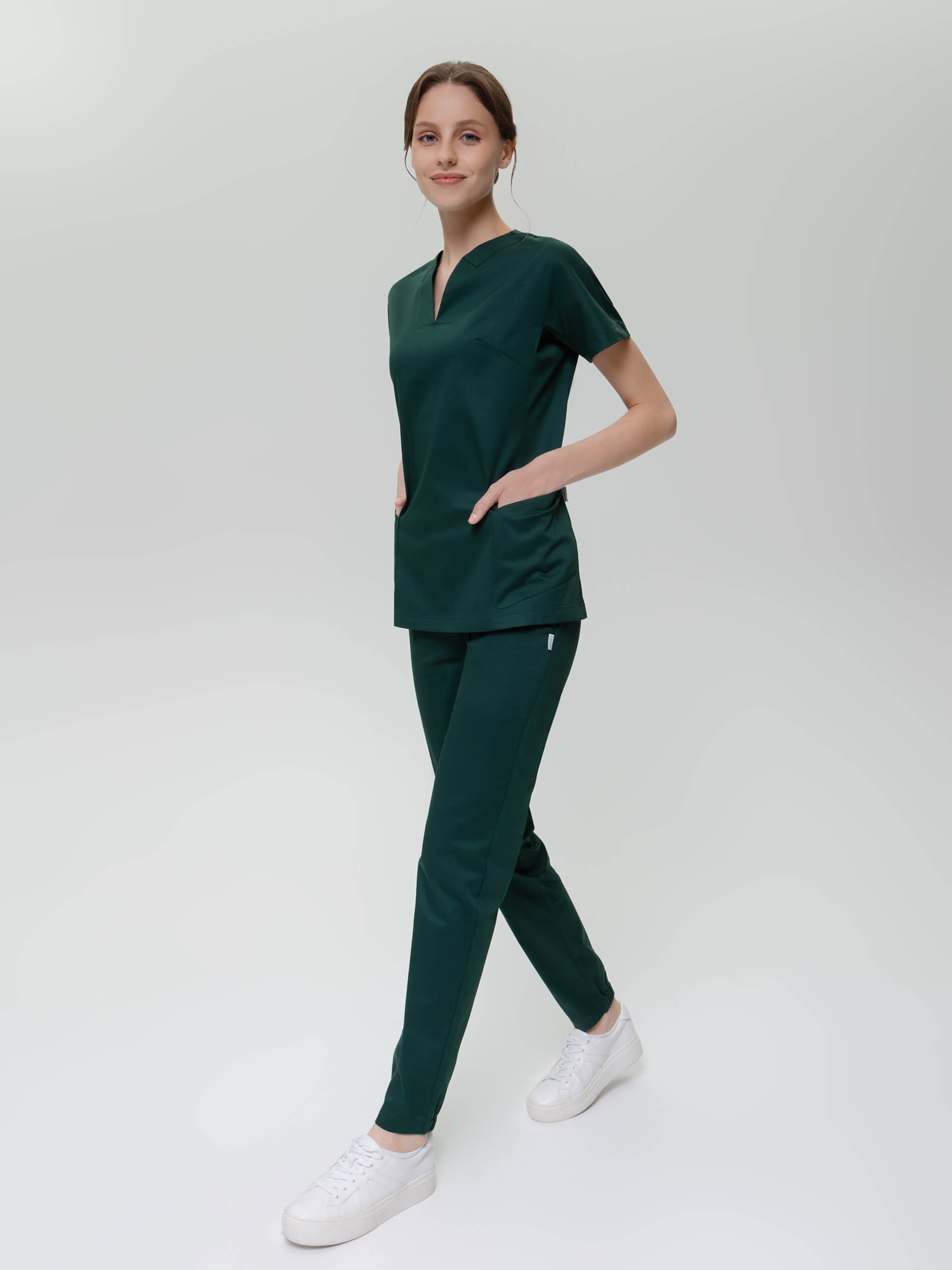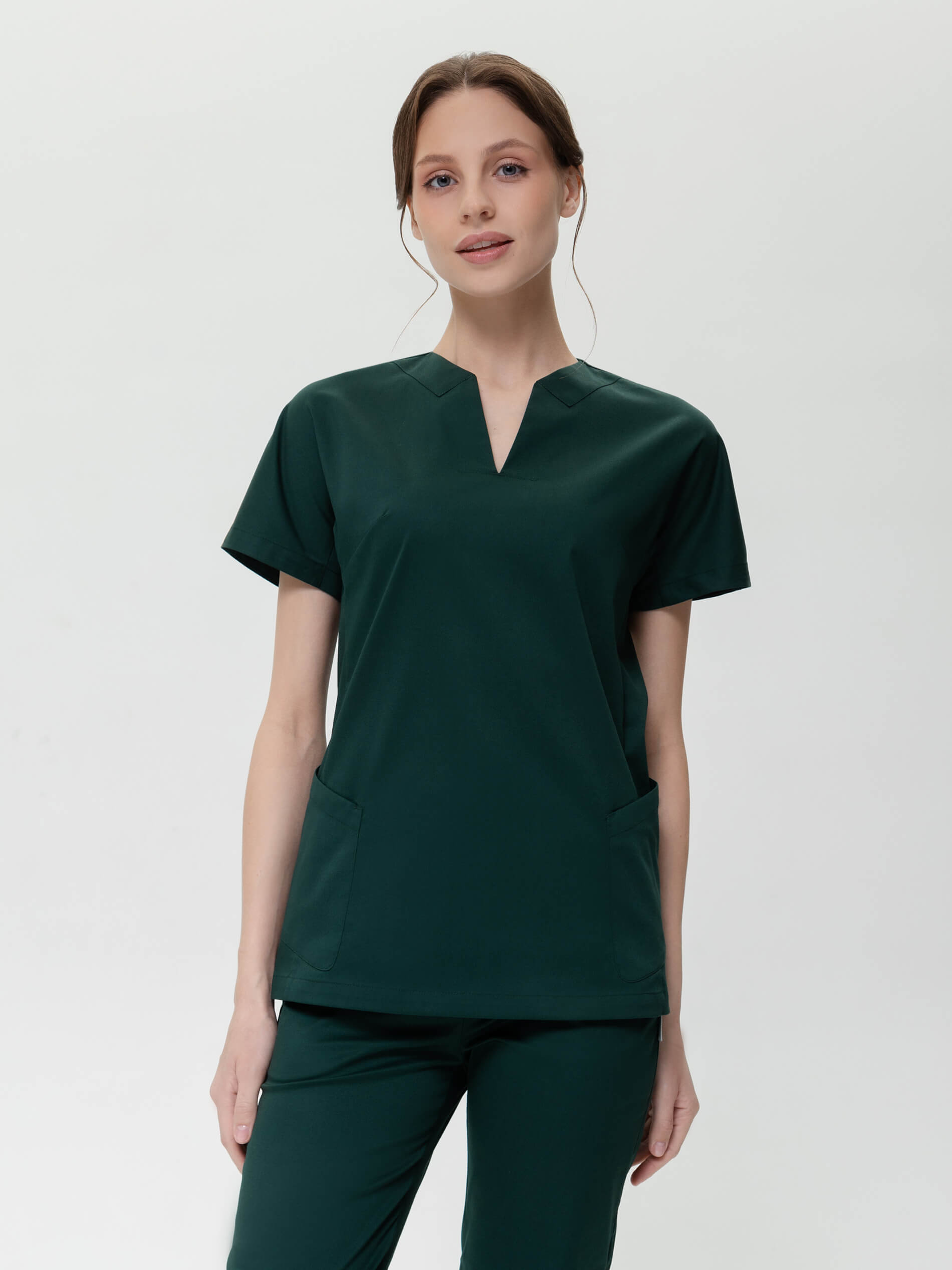 Этот медицинский костюм женский с брюками выбирают те, кто отдает предпочтение удобной и неброской, но при этом эффектной и элегантной униформе. Удачная конструкция костюма медицинскиго с брюками-джоггерами и эластичная ткань с повышеннысм содержанием хлопка обеспечивают комфортный микроклимат во время работы и сохраняют презентабельный внешний вид. Костюм медицинский женский больших размеров отлично смотрится на любой фигуре. И медицинская рубашка, и практичные медицинские брюки на резинке оснащены удобными карманами. Хирургический костюм женский выбирают те, кто предпочитает в одежде простоту, ненавязчивость и полную свободу движения. Медицинская форма женская  из легкой дышащей ткани и зимой, и летом обеспечивает комфортный микроклимат во время работы. Костюм медицинский женский стрейч синий, темно-синий останется насыщенным после многочисленных стирок, так как применяется особый вид крашения -  цвет устойчив к свету, стиркам, химчисткам, механическому воздействию.