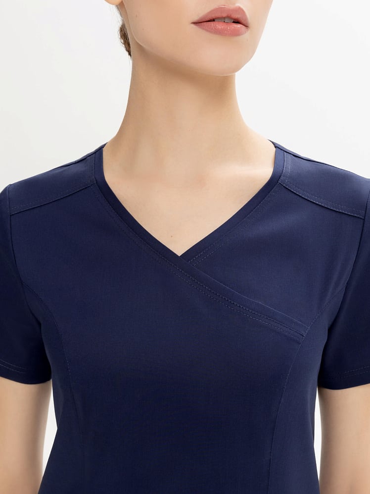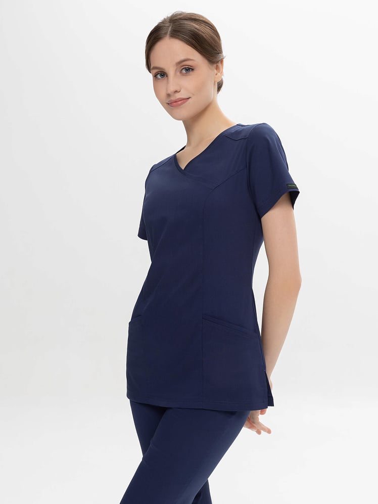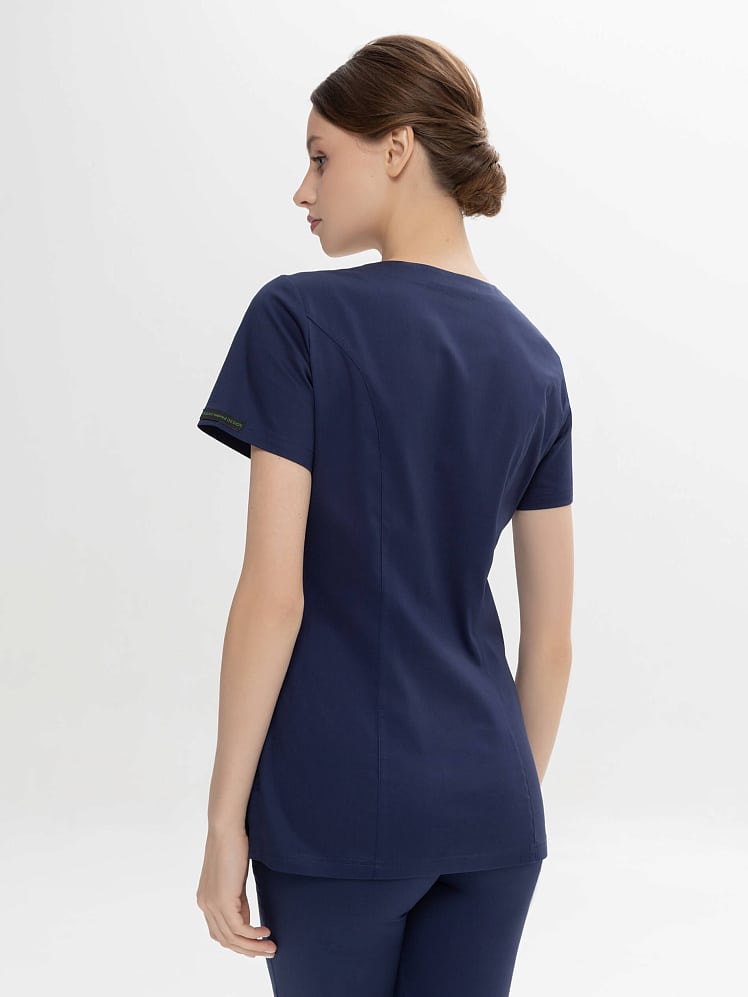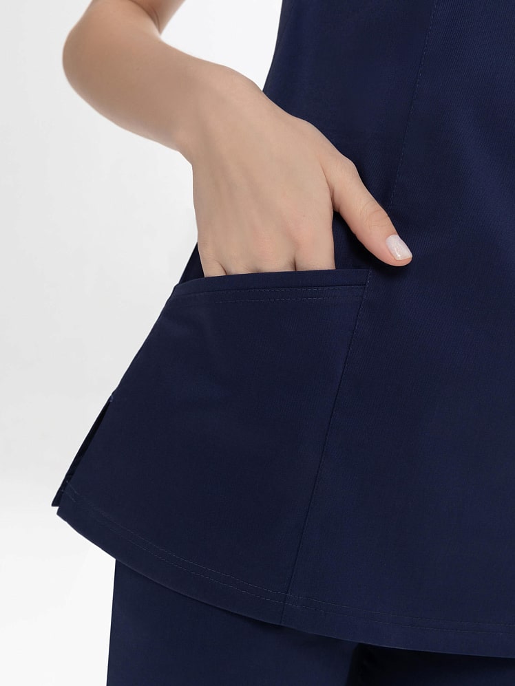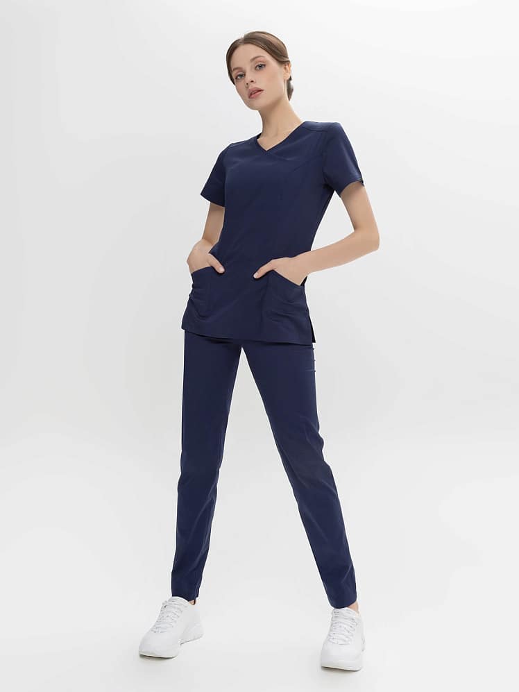 Активный и динамичный стиль медицинского  костюма прекрасно вписывается в повседневный рабочий гардероб. Истинная особенность универсальной модели  - абсолютный комфорт в движении. Этому способствуют простой силуэт, V-образная горловина на запах, и, конечно, стретч- ткань с повышенным содержанием хлопка. Костюм отлично смотрится на любой фигуре. И рубашка, и практичные брюки-джоггеры на кулиске оснащены удобными карманами. Легкая дышащая ткань обеспечивает комфортный микроклимат во время работы, выдерживает частые промышленные стирки при t до 50 градусов C,  держит форму, цвет и сохраняет презентабельный внешний вид.