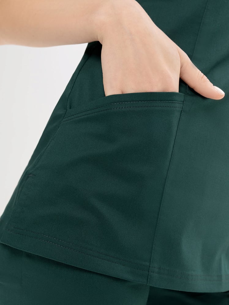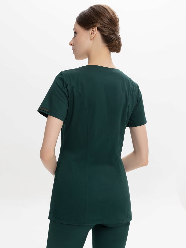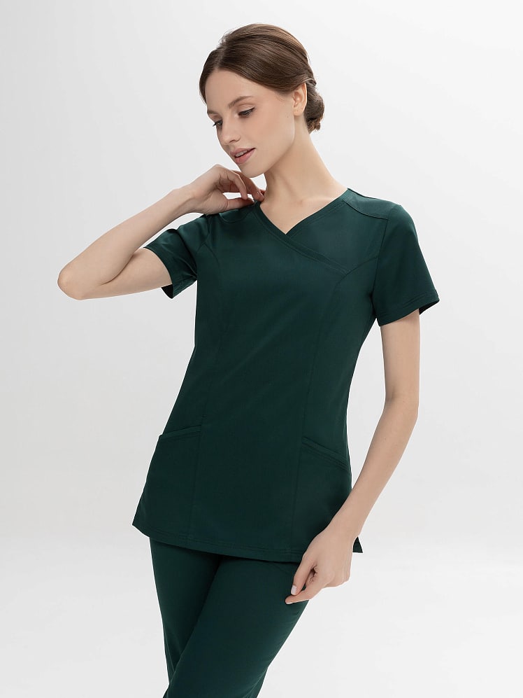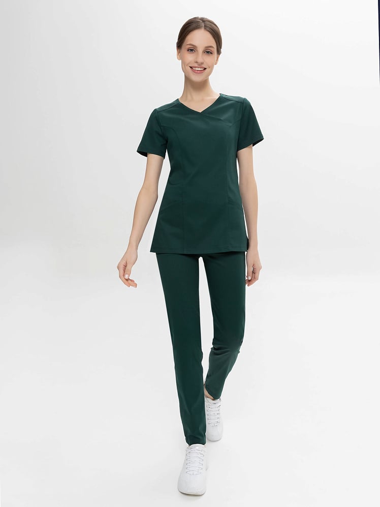 Активный и динамичный стиль медицинского  костюма прекрасно вписывается в повседневный рабочий гардероб. Истинная особенность универсальной модели  - абсолютный комфорт в движении. Этому способствуют простой силуэт, V-образная горловина на запах, и, конечно, стретч- ткань с повышенным содержанием хлопка. Костюм отлично смотрится на любой фигуре. И рубашка, и практичные брюки-джоггеры на кулиске оснащены удобными карманами. Легкая дышащая ткань обеспечивает комфортный микроклимат во время работы, выдерживает частые промышленные стирки при t до 50 градусов C,  держит форму, цвет и сохраняет презентабельный внешний вид.