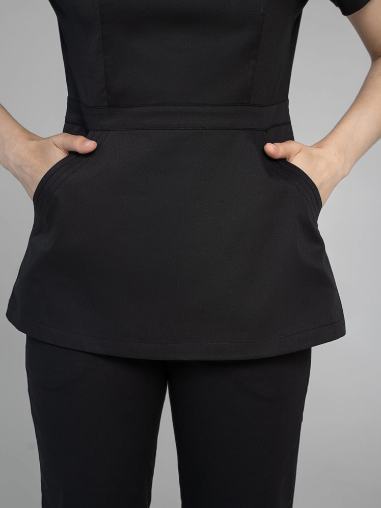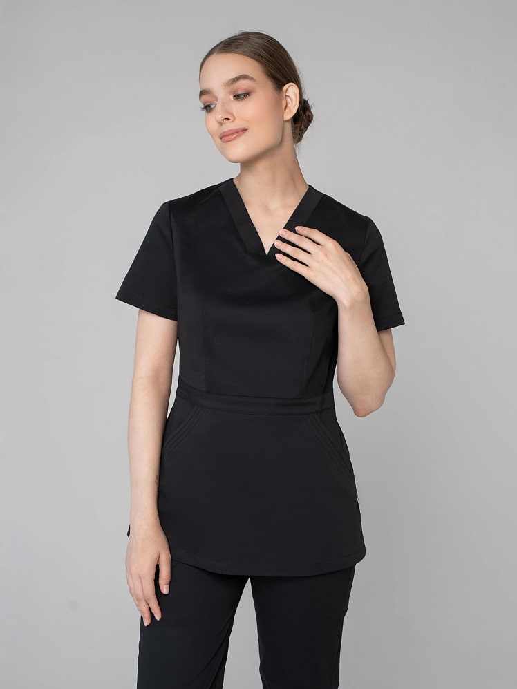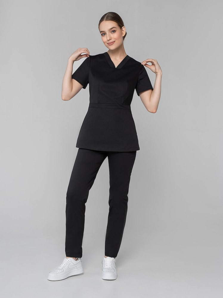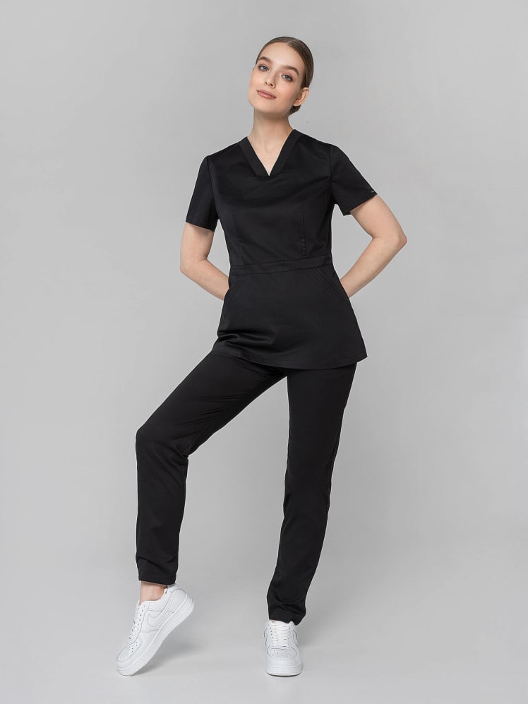 Вам надоела классика? Гармоничный и выразительный медицинский костюм с брюками-джоггерами для женщин и девушек покоряет с первого взгляда изящной комбинацией симметрии и асимметрии, классического силуэта и дизайнерской игрой линий. Облегающий лиф, подчеркнутая линия талии рубашки с притачным поясом демонстрирует женственность. Неповторимый шарм отмечают карман-кенгуру и две отлетные детали спинки. Медицинская униформа женская из легкой дышащей ткани и зимой, и летом обеспечивает комфортный микроклимат во время работы. Медицинская женская одежда стрейч с коротким рукавом останется насыщенной после многочисленных стирок, так как применяется особый вид крашения - цвет устойчив к свету, стиркам, химчисткам, механическому воздействию.