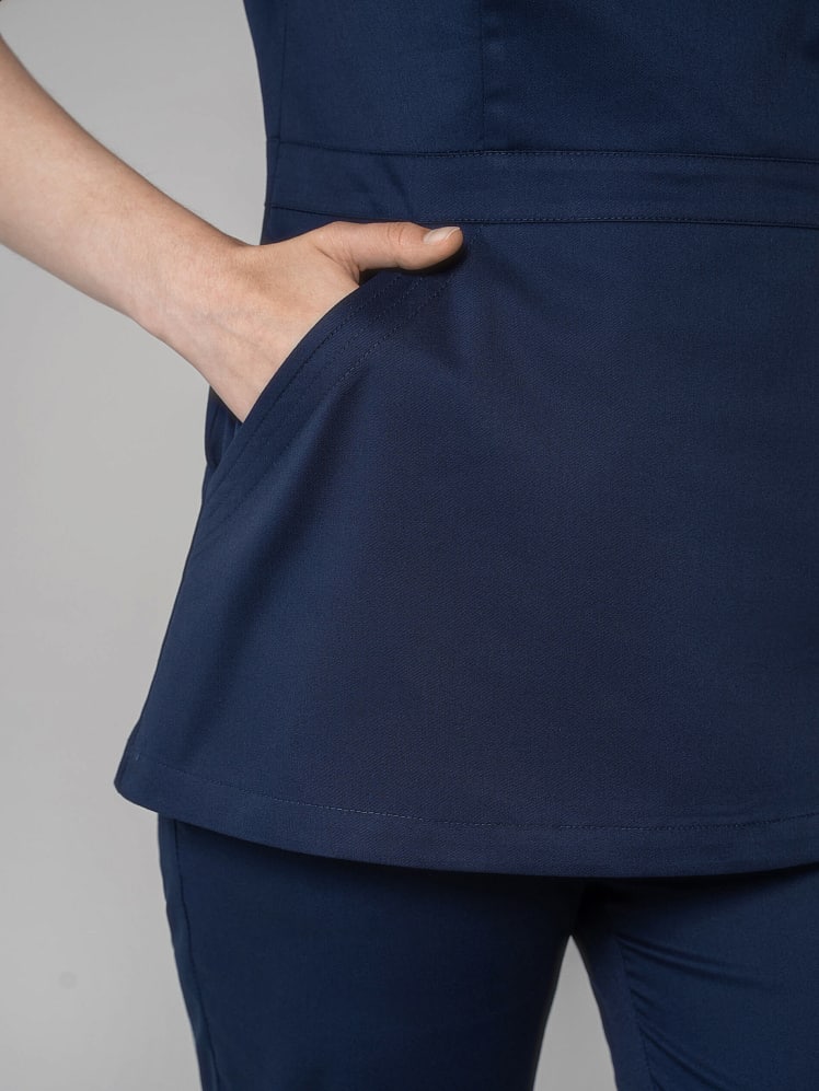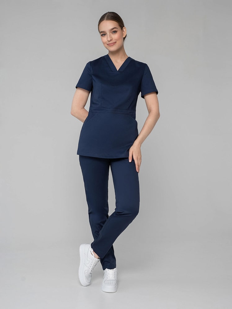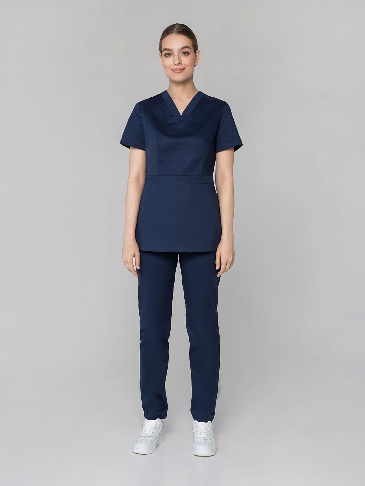Вам надоела классика? Гармоничный и выразительный медицинский костюм с брюками-джоггерами для женщин и девушек покоряет с первого взгляда изящной комбинацией симметрии и асимметрии, классического силуэта и дизайнерской игрой линий. Облегающий лиф, подчеркнутая линия талии рубашки с притачным поясом демонстрирует женственность. Неповторимый шарм отмечают карман-кенгуру и две отлетные детали спинки. Медицинская униформа женская из легкой дышащей ткани и зимой, и летом обеспечивает комфортный микроклимат во время работы. Медицинская женская одежда стрейч с коротким рукавом останется насыщенной после многочисленных стирок, так как применяется особый вид крашения - цвет устойчив к свету, стиркам, химчисткам, механическому воздействию.