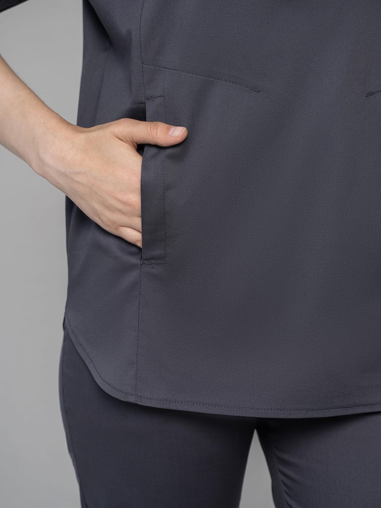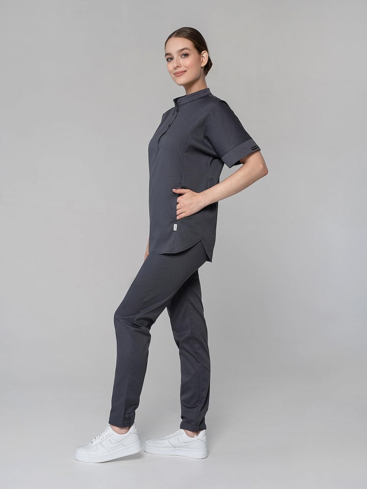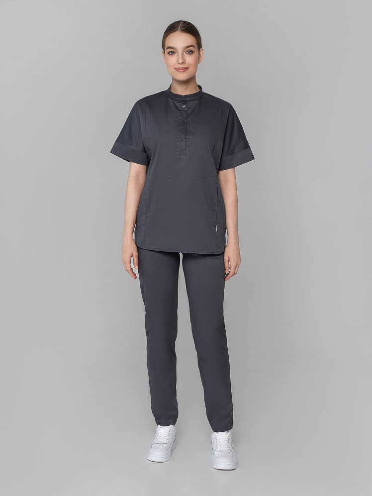 Крой медицинского костюма с брюками-джоггерами отличается необычностью и легкостью, свободной посадкой и продуманными проработанными деталями. Этот костюм медицинский с застежкой на пуговицы и воротником-стойкой на рубашке выбирают те, кто отдает предпочтение удобной и неброской, но, при этом, эффектной и элегантной одежде. Медицинская женская форма отлично смотрится на любой фигуре. И рубашка, и брюки оснащены удобными карманами. Фасон костюма с цельнокроеными рукавами сумеет подчеркнуть ваши достоинства и скрыть маленькие шероховатости. Медицинская униформа женская из легкой дышащей ткани и зимой, и летом обеспечивает комфортный микроклимат во время работы. Медицинская женская одежда стрейч останется насыщенной после многочисленных стирок, так как применяется особый вид крашения - цвет устойчив к свету, стиркам, химчисткам, механическому воздействию.