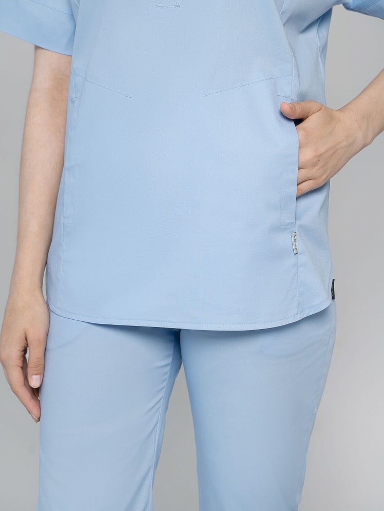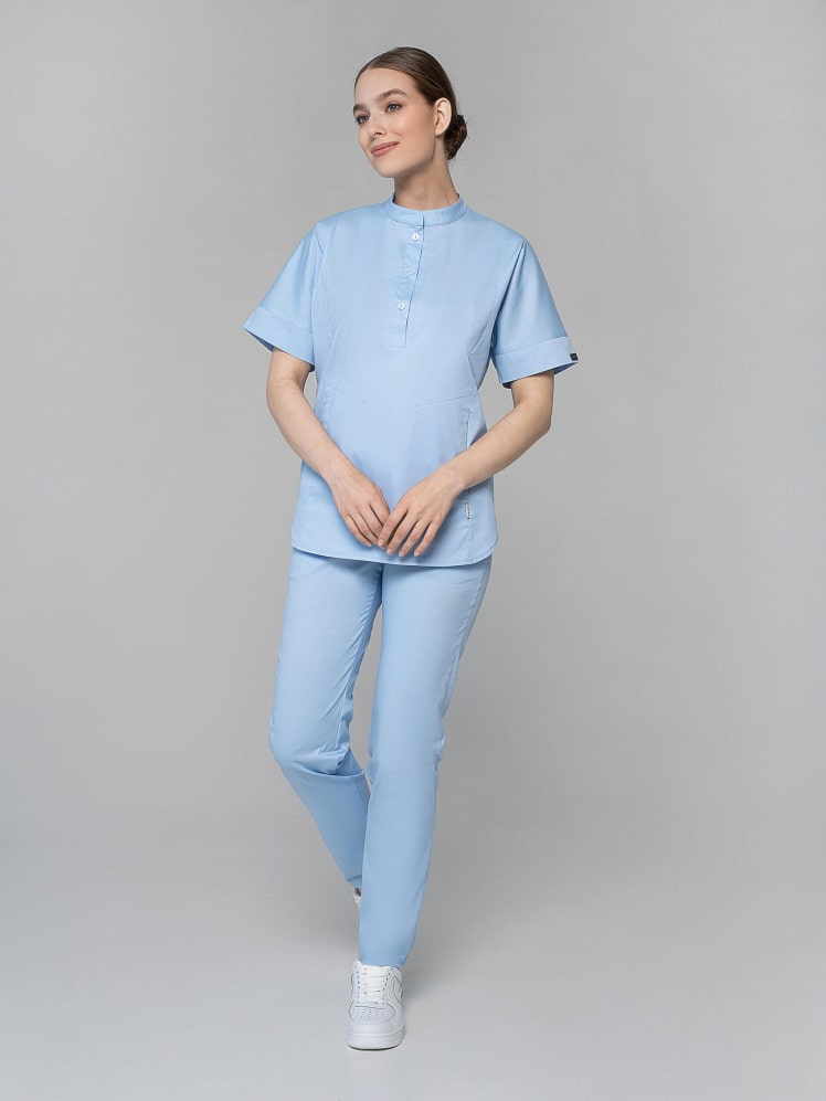Крой медицинского костюма с брюками-джоггерами отличается необычностью и легкостью, свободной посадкой и продуманными проработанными деталями. Этот костюм медицинский с застежкой на пуговицы и воротником-стойкой на рубашке выбирают те, кто отдает предпочтение удобной и неброской, но, при этом, эффектной и элегантной одежде. Медицинская женская форма отлично смотрится на любой фигуре. И рубашка, и брюки оснащены удобными карманами. Фасон костюма с цельнокроеными рукавами сумеет подчеркнуть ваши достоинства и скрыть маленькие шероховатости. Медицинская униформа женская из легкой дышащей ткани и зимой, и летом обеспечивает комфортный микроклимат во время работы. Медицинская женская одежда стрейч останется насыщенной после многочисленных стирок, так как применяется особый вид крашения - цвет устойчив к свету, стиркам, химчисткам, механическому воздействию.