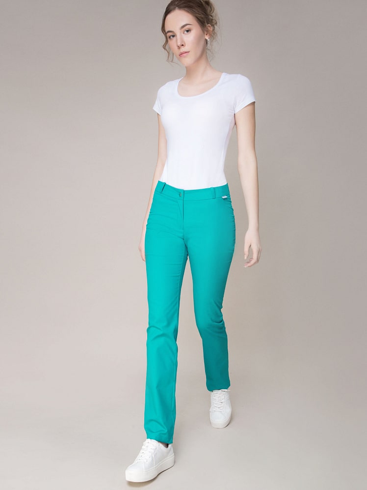 Оптимальный и безукоризненно элегантный  вариант - прямые брюки женственного фасона. Секрет этой модели кроется в безупречно точной посадке по фигуре - ничего лишнего, только конструктивные детали, которые придают четкость линиям силуэта.