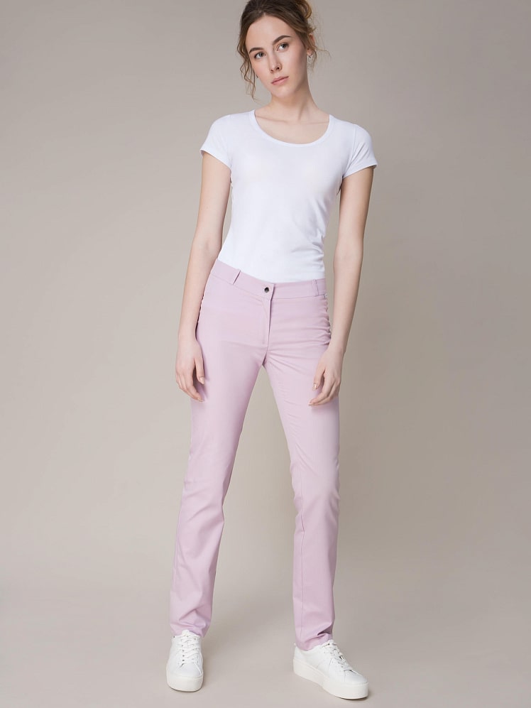 Оптимальный и безукоризненно элегантный  вариант - прямые брюки женственного фасона. Секрет этой модели кроется в безупречно точной посадке по фигуре - ничего лишнего, только конструктивные детали, которые придают четкость линиям силуэта.