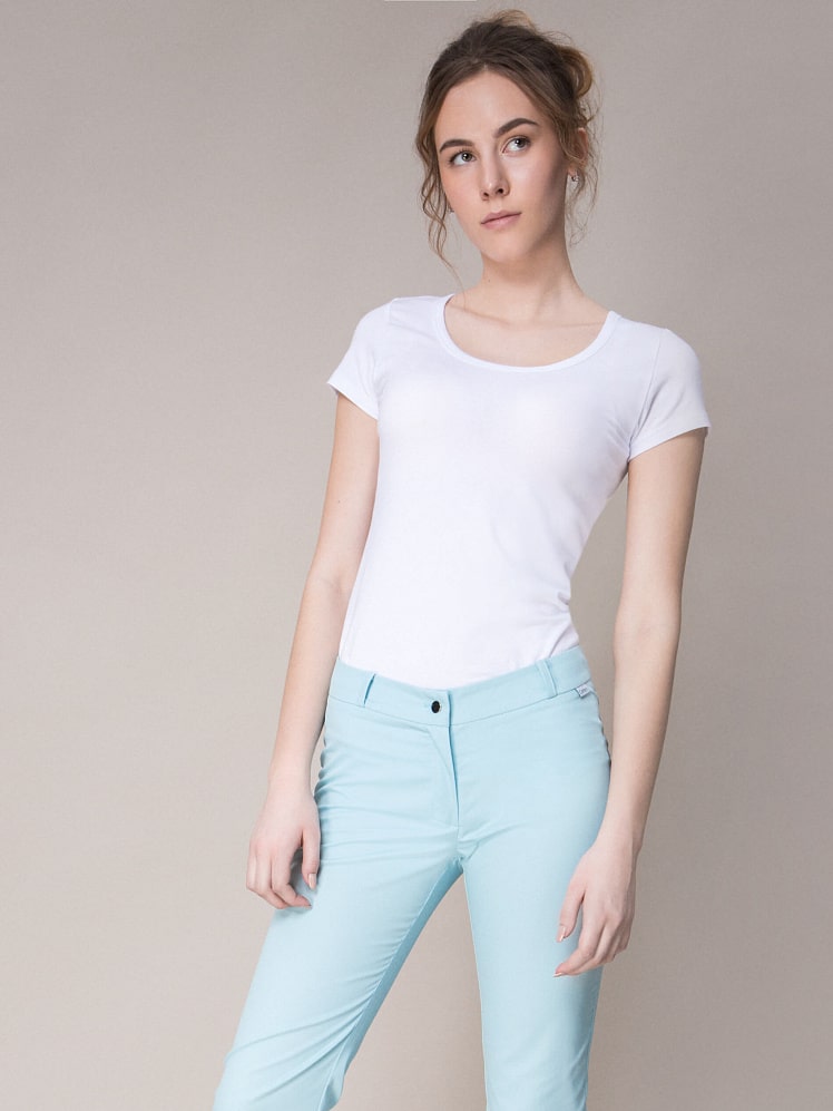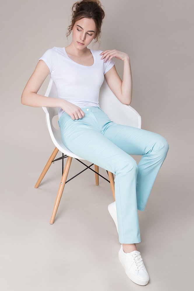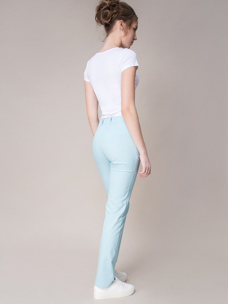 Оптимальный и безукоризненно элегантный  вариант - прямые брюки женственного фасона. Секрет этой модели кроется в безупречно точной посадке по фигуре - ничего лишнего, только конструктивные детали, которые придают четкость линиям силуэта.