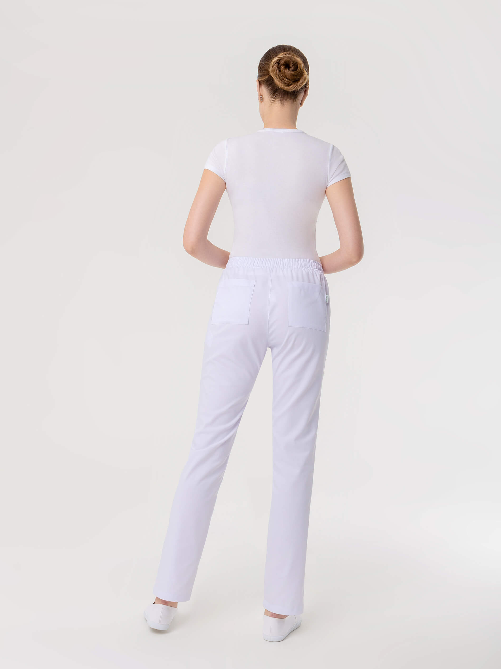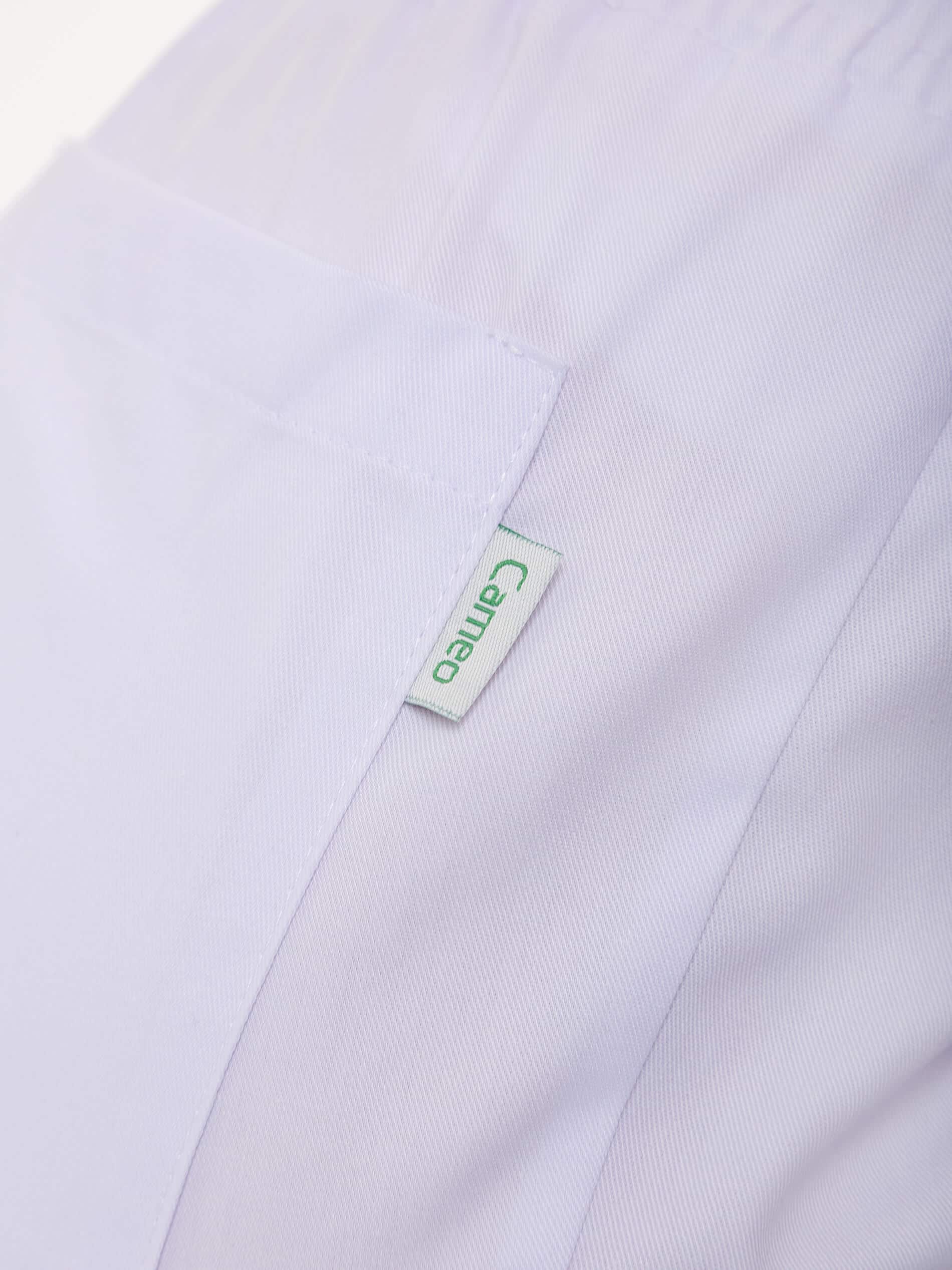 Эта модель брюк на кулиске обладает массой неоспоримых преимуществ. Они удачно садятся по фигуре, смотрятся безупречно, создавая четкий силуэт. Брюки зауженного силуэта. Верх обработан притачным поясом с эластичной лентой и завязкой. В верхней части задней половинки брюк обработаны накладные карманы. Современная ткань, содержащая натуральный хлопок и синтетический полиэстер, обеспечивает комфорт и удобство в носке, возможность частых стирок; отсутствие усадки и сохранение цвета.