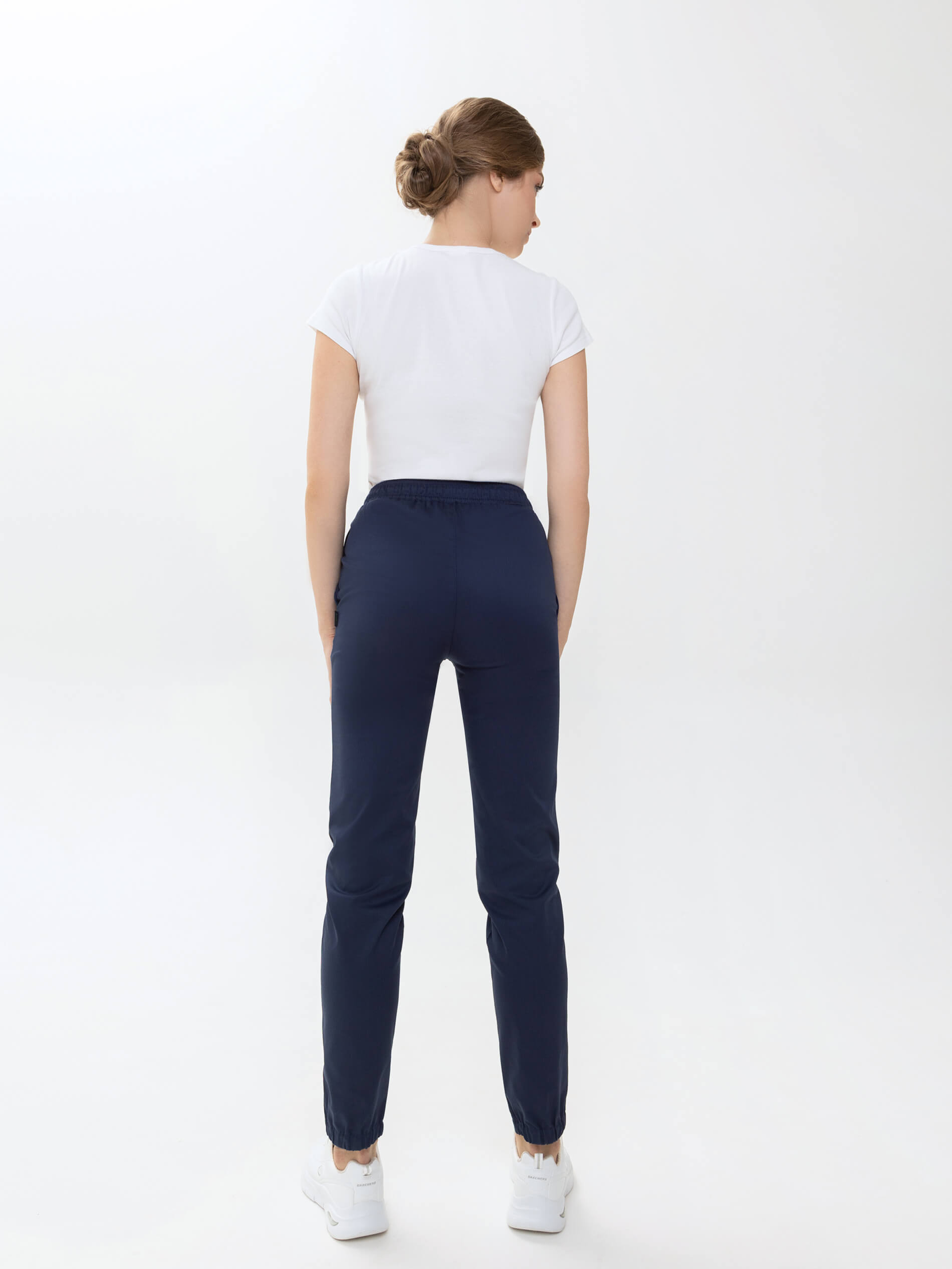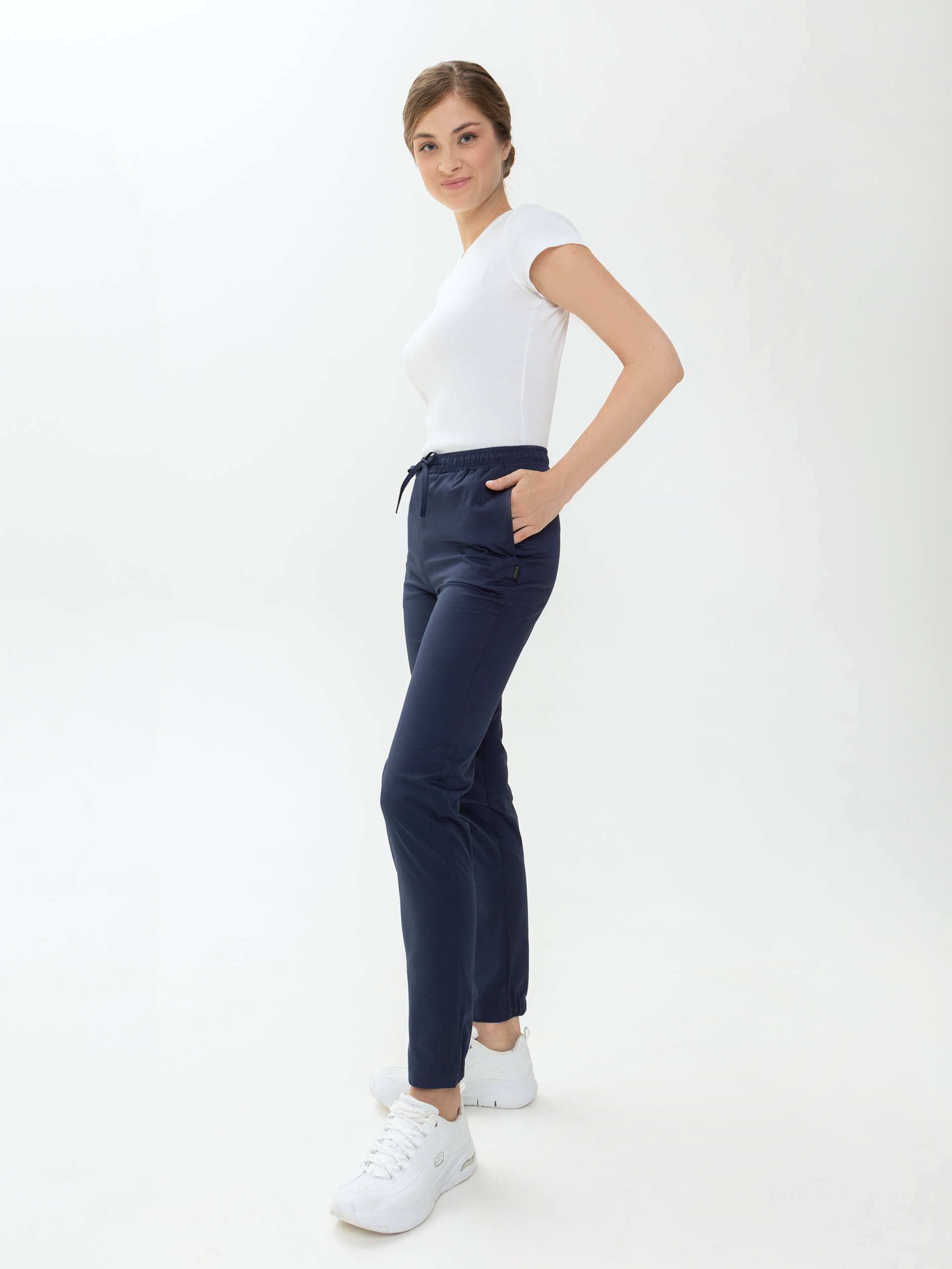 Универсальные и практичные брюки-джоггеры в активном и динамичном стиле прекрасно вписываются в повседневный рабочий гардероб. Они удобны: без застежки, с эластичной лентой по спинке и завязками спереди. Задняя нижняя половинка собрана на резинку. Медицинские брюки стрейч дополнены 2 внутренними карманами. Эта модель позволяет создавать практичные и стильные рабочие образы, сочетаются с другими моделями бренда, и с рубашками, и с халатами. Медицинская форма женская хлопок из легкой дышащей ткани и зимой, и летом обеспечивает комфортный микроклимат во время работы.