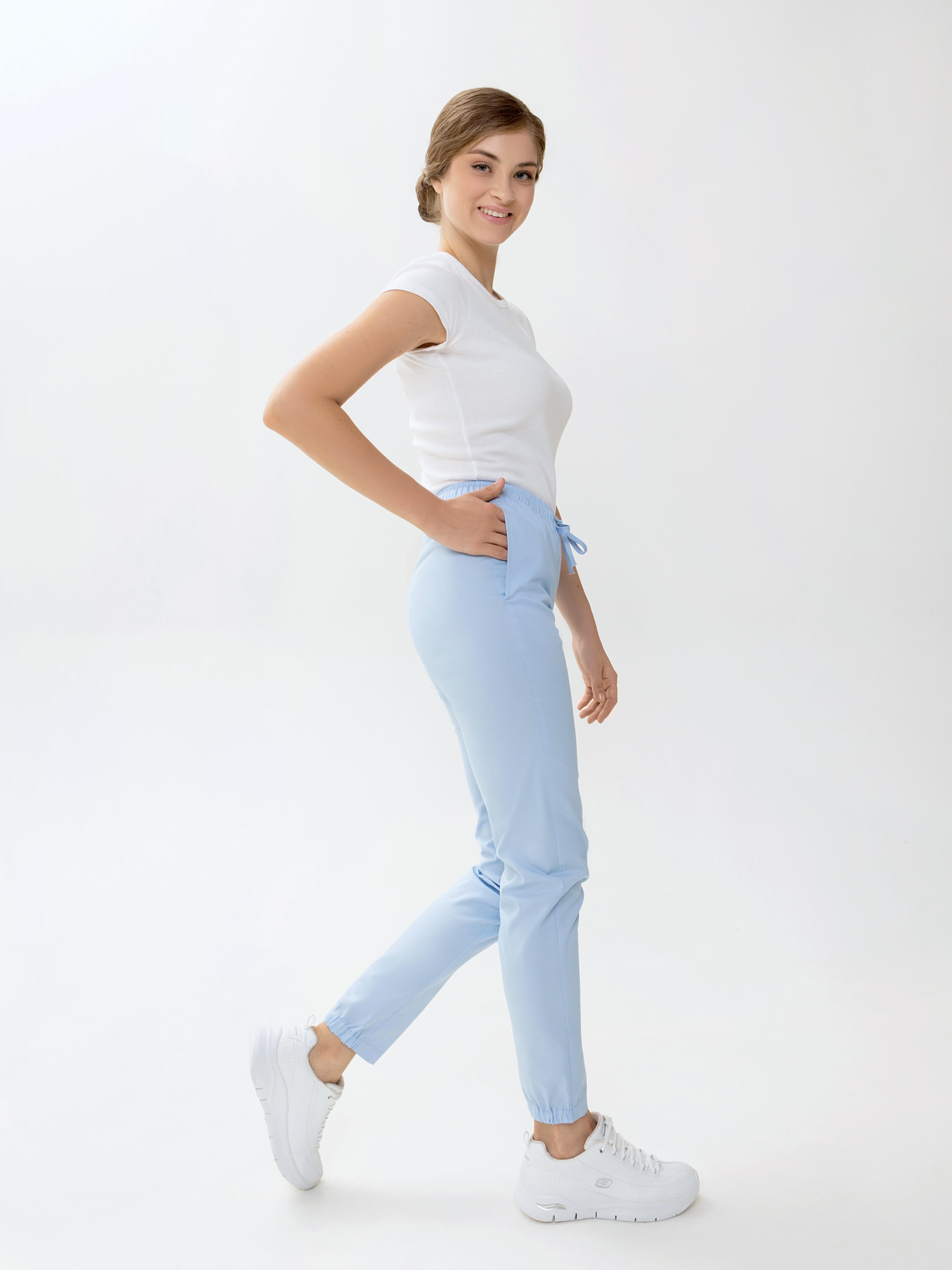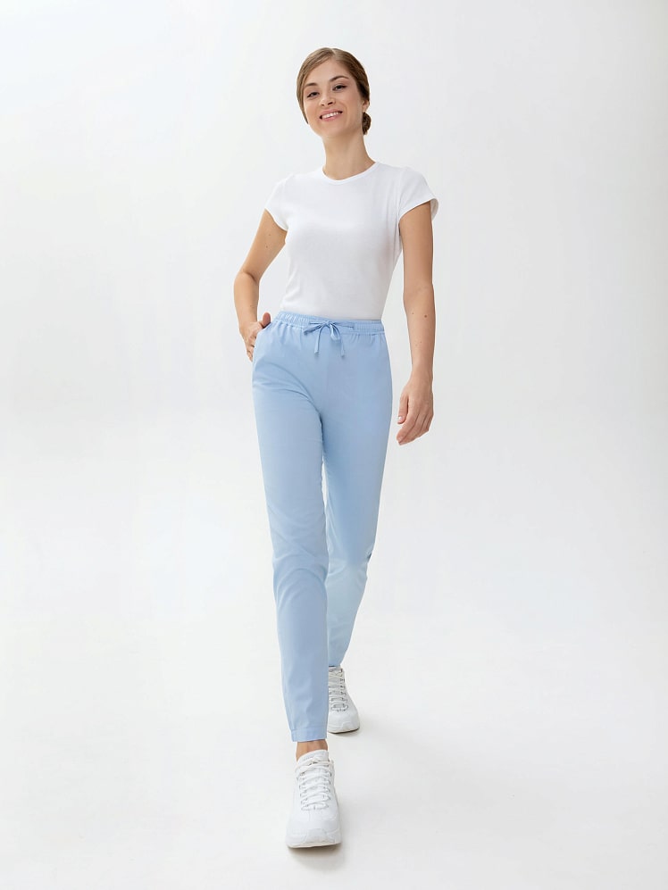 Универсальные и практичные брюки-джоггеры в активном и динамичном стиле прекрасно вписываются в повседневный рабочий гардероб. Они удобны: без застежки, с эластичной лентой по спинке и завязками спереди. Задняя нижняя половинка собрана на резинку. Медицинские брюки стрейч дополнены 2 внутренними карманами. Эта модель позволяет создавать практичные и стильные рабочие образы, сочетаются с другими моделями бренда, и с рубашками, и с халатами. Медицинская форма женская хлопок из легкой дышащей ткани и зимой, и летом обеспечивает комфортный микроклимат во время работы.