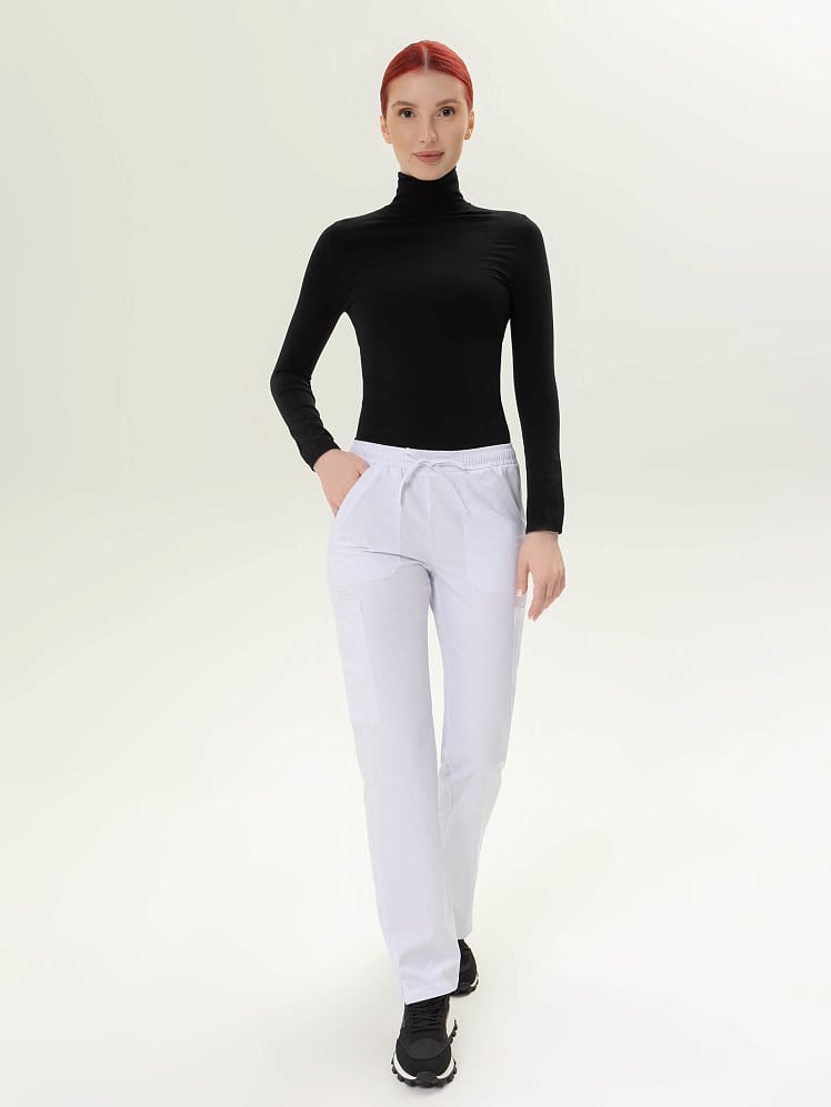 Медицинские брюки женские в спортивном стиле обеспечивают комфорт за счет свободного кроя и простого силуэта. Активный ритм жизни медика диктует свои правила, поэтому штаны медицинские женские без застежки, с обилием накладных карманов сочетают в себе функциональность и эстетическую привлекательность, актуальные модные направления и требования профессии. Модные брюки медицинские женские прекрасно сочетаются с другими моделями бренда, и с медицинским халатом, и с рубашкой. Мед брюки женские в наличии белые и цветные. Форма медицинская женская останется насыщенной и яркой после многочисленных стирок, цвет устойчив к свету, стиркам, химчисткам, механическому воздействию.